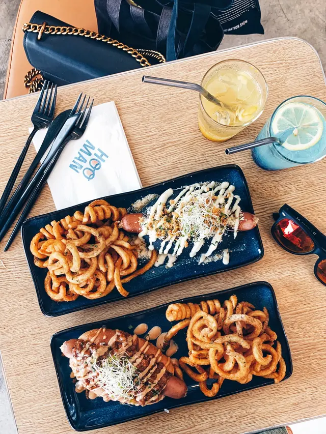 Came to the West Kowloon Art Park over the long weekend and the place was packed with kids and dogs. The line at Hooman was long but the wait was actually shorter than expected (thanks to the super efficient staff).Ordered 2 hotdogs with a drink that day. The Poodle was like an original hotdog but topped with some bolognaise while the Chihuahua was served in a black bun (can't really tell what flavor that was) with garlic mayo, crispy bacon and cheese which I preferred it more.The matcha latte was a perfect drink under the hot weather and that awesome sea view outside of the cafe is just unbeatable. Great hotdogs, an icy cold drink and a harbor view, what more can you ask for?…查看更多