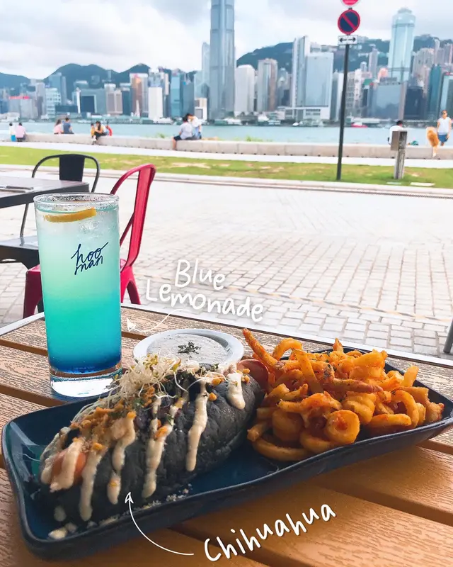 放工時看見天還未黑,你會有一絲喜悅嗎?很多時候我們被工作、被社會的大小事、又或者近來被反覆的疫情所吞噬,明白近來每天的生活都過得比較鬱悶,香港人最喜歡放假時周圍去,無論是出國旅遊或是到離島閒逛,對於現時的情況來說都是有點困難,甚至連行山等戶外活動最好還是可免則免。但適當地平衝一下生活,讓心靈得到健康同樣重要。日落時份,一邊看著優美的維港景色,一邊享用美味的餐飲,西九文化中心的環境及餐廳都非常有質素,雖然晚上六時後禁止堂食,但這天還是來到動物友善餐廳Hooman by the sea買外賣然後坐在海邊吃晚餐。Bichon Frise HK$68Hooman主要供應熱狗,有趣的是它們所售的幾款熱狗都是以不同品種的狗狗作名字,像這款材料有酸瓜酪梨醬、芥末蛋黃醬及法蘭克福腸的就取名為Bichon Frise(比熊犬)。購買熱狗更可以HK$28加配薯條或沙律,熱狗的份量比想像中要大,絕對能夠吃到飽。Bichon Frise的芥末蛋黃醬味道非常突出,配上酸瓜酪梨醬口味十分新穎。酪梨其實就是牛油果,而酪梨醬通常出現於墨西哥脆片的沾醬中,或許這樣一說大家就有印象了。Chihuahua HK$68這款以芝士脆煙肉碎配香蒜蛋黃醬及法蘭克福腸的名為Chihuahua(芝娃娃),全黑色的麵包外形吸引,芝士及脆煙肉碎味道香濃惹味,值得一提的是法蘭克福腸是脆皮腸,熱狗配脆皮腸份外好吃。加配的炸薯原來是薯圈,已經很久沒有吃過這種薯圈,剛炸起仍是酥脆香口,而且份量也不少,值得一試。Blue Lemonade HK$48這杯Blue Lemonade的打卡度非常高,湛藍的檸檬梳打與天空及海洋的藍色十分相襯,飲品賣相夢幻,再以維港景色作背景簡直一流。檸檬梳打口味清新,是一款很適合夏天炎熱天氣的飲料,不過飲用前記得先用飲管拌勻,因為底部的糖漿都頗甜。特別要提的是Hooman用的是米漿飲管,雖然浸泡在飲品中還是會變軟,但較紙飲管更堅硬及耐用一點。Ice Honey Lime Black Tea HK$48這杯Ice Honey Lime Black Tea賣相和味道都和平日喝的檸檬茶沒有太大分別,還記得我問男朋友:「這杯有沒有特別?」他回答我說:「特別地普通」,當時就決定一定要記得把這個小對話記錄下來,現在回想起也覺得好搞笑,但老實說其實這杯也不差,只是因為其他飲品太有特色才令這杯顯得有點失色而已。…查看更多