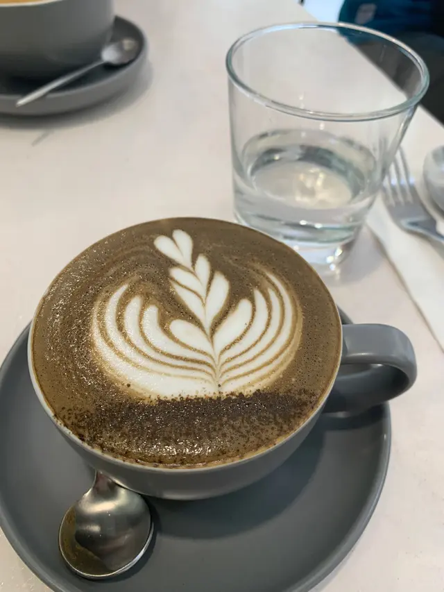 Sunday breakie ☀️☀️☀️My friend chose to start the nice day with me in this lovely cafe 🥗It was crowded when we arrived the cafe . We left the phone number and the staff called us after 25 mins . The hojicha latte looks really good 😆 Amazing latte art and tea powder for garnish ! The tea tastes really strong 💯You can choose base veggies for salad base . I chose rocket , zucchini and cherry tomato for base . They are really fresh and nice ! I chose blueberry 🫐 sauce for dressing . It’s really refreshing 🤩 I also top up the octopus 🐙 to the salad . It’s soft and yummy. …查看更多