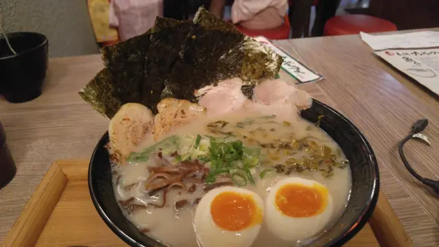 是咁的,一講起豬骨湯拉麵,普羅大眾最常聯想起嘅發源地可能會係九州,或者博多,但可能一般人未必聽過,豬骨湯拉麵其實係源自長浜。當我知道香港有間店專食長浜拉麵嘅時候,其實我係相當興奮。因為一,未食過,二,我想知道同豬骨湯拉麵天花板,一蘭,去比較嘅話,有幾大差別。呢間店入面有張相,看似呢個品牌都係做屋台起家架喎《No.1拉麵》香味 (4.5/5) - 香味濃郁。除左豬骨湯嘅香味,仲聞到海苔同醬油嘅香味,相當好聞。湯 (4.5/5) - 中等濃稠,以豬骨湯來講我認為好合適。筆起個湯,第一啖入口覺得口味算中等至少少偏淡,不過因為我本身鍾意食淡口味,所以非常鍾意。豬骨嘅鮮味同鹹香,我認為同一蘭真係有得 fight,未至於去到一蘭個湯咁濃郁但都算8成,足夠滿足。不過,個湯唯一嘅問題係,因為佢比較濃稠,而拉麵師傅我諗佢放個麵落個湯道時,冇額外去搞均,所以個湯變成個面係淡,個底係鹹,食到尾時個湯都偏鹹。但整體來講個湯嘅完成道非常高,豬骨味夠濃郁,鹹鮮味齊晒,濃稠質地令個麵相當掛湯,4.5 分我認為冇比多,亦冇比少。麵條 (3/5) - 豬骨湯要配幼麵,呢個人人都知道,呢間店亦唔例外。我選左硬麵,而可能因為我影相都影左3-4分鐘,個麵食落唔算硬,算剛剛好。麥味都係一如其他幼麵咁,唔特別出,但算 ok。配料 (4.5/5) - 豬叉燒方面,有兩款,每款兩塊。第一款係豬腩肉,出奇地厚切,唔算肥膩,但肉味一般。而,另一款係豬里脊,瘦,但極之腍同甘香,呢下絕對有驚喜!我認為比腩肉更加出色!另一款我本身好少會咁早提嘅配料係,海苔!呢道個老闆都幾大方,比4大塊!上菜時個海苔仲係脆架!另外,都有一款不促之客,係响豬骨湯拉麵世界入面比較少見嘅高菜。因為以醬油醃漬,所以個麵一到時,聞落係有大陣醬油味。因為有醃製過,都有一定鹹度,而我認為對個湯冇特別提升層次,可有可無,但勝在特別,亦夠香。一如其他豬骨湯拉麵,都有跟木耳絲。溏心蛋方面,正常好食。最後,完食!整體 - 值得推薦 👍👍👍👍👍…查看更多
