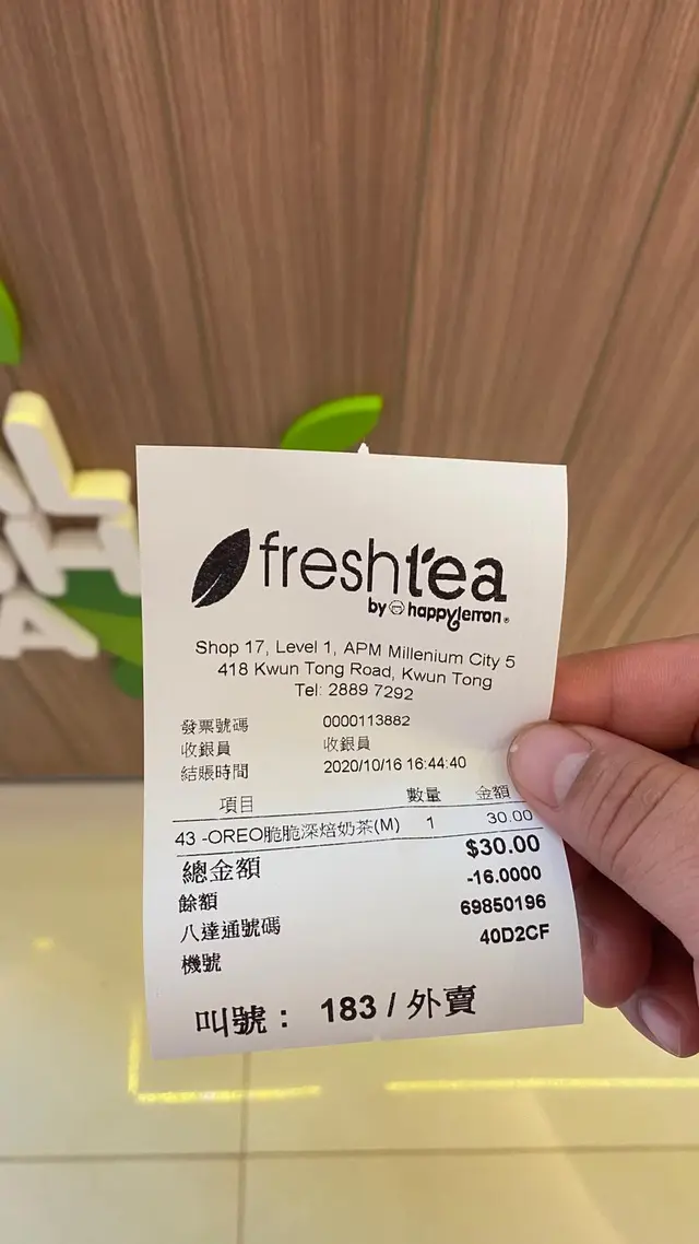 期待以久的奶茶 applehung2002等级12020-10-161K 浏览 关注 很久之前,我好記得在APM店試過這杯OREO脆脆深焙奶茶,當時個男經理見原本OREO脆脆奶茶冇哂,就詢問可否用深焙奶茶代替,當時一試就難忘了,OREO+奶茶本身都好夾,意想不到加埋深焙是更夾,更加好飲。但可惜之後我再來時,就沒有得購買了,還以為以後都不能再飲呢杯飲品了。今日路經此地,望一望個餐牌,發現不同了,他們今次加入了新產品Mojito同薄荷,望真D ,期望以久的OREO脆脆深焙奶茶出現了。飲品內有好多OREO,但吾會偏甜,用埋深焙奶茶茶味更香。服務員態度非常好,落單清晰同方便。…查看更多以上食记乃用户个人意见 , 并不代表OpenRice之观点。赞好分享期待以久的奶茶 freshtea by happylemon (創紀之城五期(apm)) https://s.openrice.com/QrbT0xuOw00检举 张贴 评分5味道2环境4服务3卫生4抵食推介美食OREO脆脆深焙奶茶$30OREO脆脆深焙奶茶用餐日期2020-10-16等候时间5 分钟 (堂食)