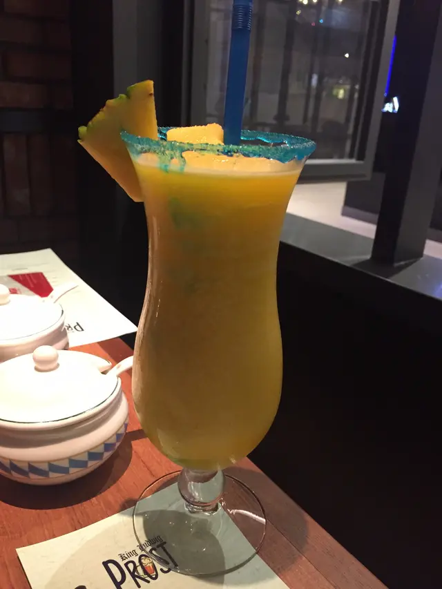 美麗華商場自從增設了食四坊後,BeautySearch 每次來到附近,都會心郁郁,想前來這裡覓食,這夜也不例外。不過,今次不是來到4-6樓的食四坊,而是位於商埸3樓的《Prost by King Ludwig》,這店子的外牆實在太吸睛了,紅磚外牆加上巨型的窗戶,仿如城堡般神秘、吸引! 店內的燈光略帶昏暗,室內設計以紅磚及木材為主調,加上獨特的烏絲吊燈,水喉通的裝飾,令店內注入工業風味。店內還有一個大大的酒吧櫃,同場還陳列了不少啤酒杯,充滿德國餐廳的氛圍。 而 BeautySearch 最愛餐廳的戶外部份,除了空間感十分外,最重要是這裡放置了一架野餐車,四周還擺放了餐桌,在這裡進餐,感覺猶如來到外國享受露天餐旅,十分寫意!享受寫意人生,先來品嚐一杯「Sapphire Punch」,這是一杯芒果 Punch,這款夏日特飲,為為夏日添上冰涼感覺,以芒果為主調,搭配上 Blue Syrup, Pineapple Juice, Lime Juice,質感略稠,味道很酸酸甜甜,很 fresh。杯邊加插了一片菠蘿,令特飲更添加夏日色彩!不知道德式風味的脆烤餅是甚麼!? 我們點選了一客「三文魚德式風味脆烤餅」來品嚐,上桌時給我最大的感覺是 - 『方形 PIZZA』!四四方方的烤餅,舖滿了煙三文魚,濃郁惹味並帶有點點鹹香,餅底烤得香脆,咬落脆卜卜的,搭配上芝士、煙肉、車厘茄等配料,口感豐富,非常滋味!德國菜中,香腸可算是數一數二受歡迎的美食之一,勝在款式味道夠多,而今次我們點選了「德國腸拼盤配酸椰菜及燒薯、薯仔沙律」 一次過品嚐多款不同風味。款式太多,其實 BeautySearch 不太懂得辨別,加上,友人很體貼地把所有腸仔切片,方便進食,那就更難辨別喔!不過,當中有幾款我的印象較深。好像放在最左邊,腸身較粗,表面以交叉式切開的是「德國 "金裝" 牛肉豬肉腸」,不吃牛的 Foodie 要注意喔!但 BeautySearch 卻甚為喜歡,加入牛肉的香腸,肉味更濃、更香,份外滋味。腸身偏淺色帶點燶燶的是「紐倫堡馬祖林粗豬肉腸」,油香豐富,味道濃郁,腸衣亦帶煙韌,口感不錯。還有外形像波波的肉腸,內藏了芝士,當然也是 BeautySearch 的心頭好!餐廳還提供了兩款醬汁, BeautySearch 怕辣,所以只蘸了點點蜜糖芥末醬來嚐嚐,微甜,也不錯喔!壓軸出場的,當然是德國有名的豬手「脆皮燒豬肘配酸椰菜及薯仔」。店員先把原隻脆皮燒豬肘揣上桌,讓食客相機先食。接著,店員便會在旁展示他的刀功,店員非常熟練,手起刀落,三兩下就把豬手切好,再上桌。外層燒得非常香脆,入口咬開時,脆卜卜的發出清脆的響聲;肉身呈粉紅色的,感覺非常嫩,入口肉汁豐富。味道剛剛好,不會太鹹。如果嫌豬手油份重,還有大量酸椰菜伴碟,可以中和一下喔!甜品時間,是久違了的「火焰雪山配鮮果」,店員把雪山揣上桌後,隨即用火槍燃點火焰,火勢不算猛烈,卻持續近數十秒。雪山外層口感與味道都與半熔的綿花糖非常相似,帶點點酒味,內裡是果仁雪糕,外暖內冷,口感層次非常豐富,搭配上新鮮什果伴碟,太美滿了!…查看更多