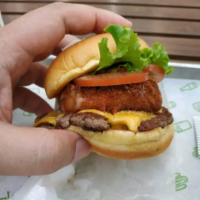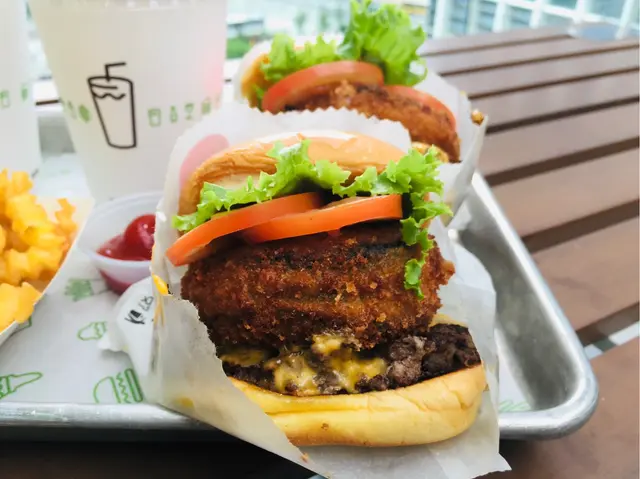 多年前喺New York食過Shake Shack,一改我對快餐店漢堡包嘅印象,既juicy,醬汁又好食,直情令我返黎後本來唔鐘意食漢堡包都變開始鐘意。Shake Shack初黎香港時,落戶中環。同大部份過江龍一樣,初開時,每日都大排長龍,亦因為咁樣,可能點都對食物質素有少少影響,所以喺開業時,試過一次後,就甚少再試,因為覺得同New York嘅爭太遠,又唔平。今日黎開IFC,因為想食個快嘅,就再黎,點咗:🍔Shack Stack $89🍋Fresh Lemonade $25驚喜地,今次整得非常好,又令我諗返起當年喺New York時食嘅感覺🤤呢個 Shack Stack一睇就知勁邪惡😈佢嘅最上層系大塊蕃茄同生菜塊,之後系超厚牛肉同大塊蘑菇一齊炸嘅車打芝士。食時,咬到厚厚芝士令人超滿足。黎食 Shack Shack必飲佢嘅新鮮檸檬汁,雖然唔知系咪真嘅檸檬汁,但都飲得出唔系開粉衝,下次再試埋其他分店先😋🍔Shake Shack (國際金融中心) (中環)📍中環港景街1號國際金融中心4樓4018號舖…查看更多