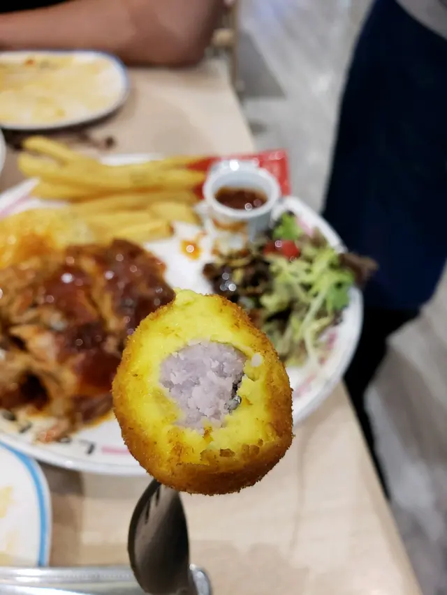 近排在粉嶺返工,而女朋友很喜歡這間少女餐廳,放工後就約她一起晚飯,這個是開放式店鋪,坐位約30-40個,因為在商場內人來人往,都幾嘈雜。UFO小食拼盤份量都幾大,果醬燒雞翼很好吃,甜甜蜜蜜,炸魚就太淋了,炸紫薯波中間很熱很香,炸魷魚沾沙律醬很香口,炸雞翼比較乾。夏威夷果汁醬燒豬肋骨是限定推出的,醃得幾重味道,豬肋骨都很腍,幾值得試。魷魚黑魚籽醬意大利麵有大量櫻花蝦乾,咬落一粒粒魚子很有口感,味道調校不錯,不過黑魚籽醬偏鹹。雪山藍波子輕氣泡中間的雲呢拿雪糕及增加了奶滑口感,佩波子汽水夠創新!味道都是水準之上,而且今次送了coupon,正呀!…查看更多
