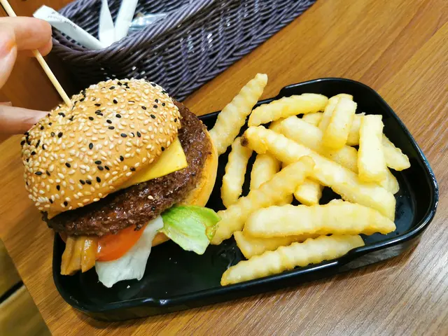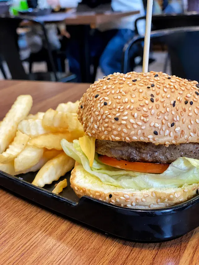 好耐冇黎科學園。趁天氣好就帶埋細路入去踩單車。午飯時間就黎左呢間cafe食個light lunch。上次黎可能成年之前,餐牌好似唔同左。周日都有午餐,包一杯簡單熱飲,仲免加一。先到收銀俾錢,然後坐低等野食送上。忌廉菠菜煙三文魚菠菜闊條麵 $68賣相冇期望都冇失望。煙三文魚唔係原塊,撈左入d闊條麵度,d麵夠高温所以d三文魚基本上係熟既。闊條麵質感又ok喎,有d嚼勁唔會過淋,係我鍾意既質感,份量好多,食極都有。菠菜都有唔少,同忌廉汁一齊食幾嫩滑,另外仲有d爽甜洋蔥絲,加d口感。仲有支裝芝士粉俾你自己加。WM安格斯牛肉燒汁雜菇芝士漢堡配薯條 $82呢個漢堡真係唔錯,首先上下兩塊包都有超多黑白芝麻粒,超香,同埋焗得超鬆脆,好食。最底個層包揸左牛油,上面有一塊大生菜同蕃茄片,然後就係漢堡扒同上面既燒汁,再加上一塊芝士同雜菇就完成。呢個漢堡都幾juicy,燒汁味道較出,配合香脆麵包好味道,用刀切開四份都方便食用。薯條係波浪厚切,新鮮熱辣炸起都幾好食。茄汁同芥末醬喺自助調味吧攞。叫左兩杯熱檸水,每杯兩至三塊檸檬。總括而言,今次d食物好食左,特別係安格斯牛肉燒汁雜菇芝士漢堡。下次希望試下其他漢堡。笑臉主要係俾喜出望外既食物質素。…查看更多