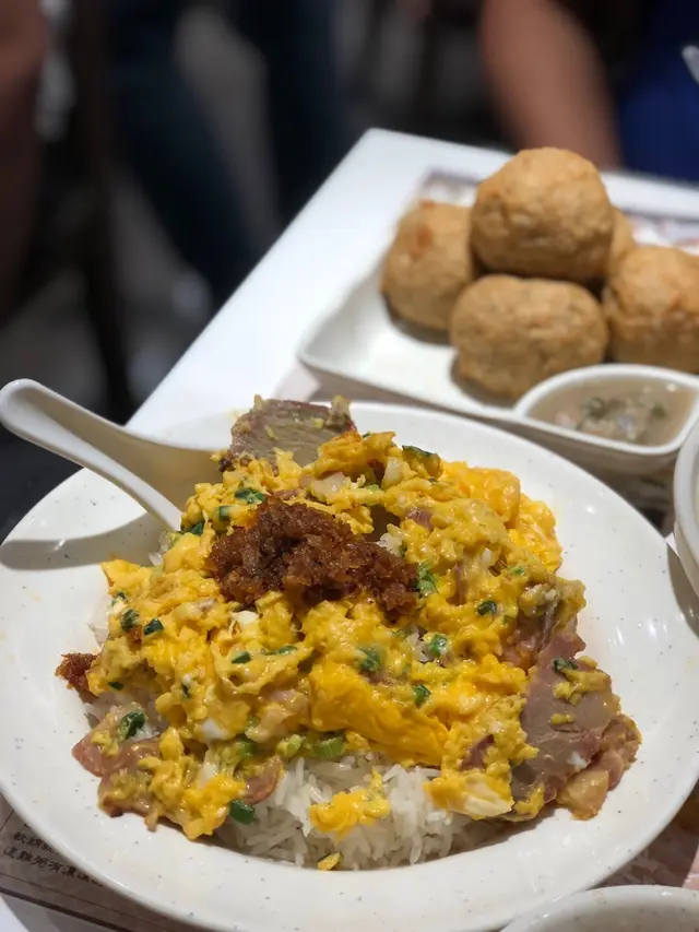 這夜突然想吃雞粥,友人帶我來到旺角的“新記雞粥”,餐廳好旺,7pm多到都要等5-10分鐘才入座。這裡其實除了雞粥出名,也有些小菜。我特別推介蜆介鯪魚球,因為大大粒,炸到金黃色,外皮香口,魚肉彈牙。👍🏻貴妃雞粥亦很不錯,雖然沒有Menu的相片中好看,但貴妃雞尚算香滑,粥底香滑又夠綿。另外,我們看見鄰座在吃 XO醬叉燒炒蛋飯($56)好像很不錯於是也點了,XO醬沒炒進飯內,可以選擇性撈多少,蛋半熟撈飯很好吃,但叉燒略肥又有筋,很扣分。…查看更多
