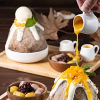芋泥芒果奶蓋雪花盛盤