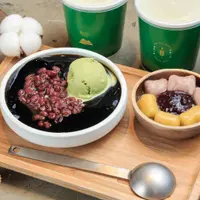 抹茶米麻糬嫩仙草盛盤