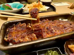 蒲烧鳗鱼1条、日本宫崎A5和牛丼日本生蛋黄、日式腌菜、三吃配料、鳗肝汤店员上菜时细心讲解可以点样三吃,跟足三个方法就可以品尝到三种不同味道既鳗鱼食法🥰🔅第一食:原条鳗鱼直接食,试佢最原始嘅鲜味!🔥一啖咬落去,皮脆肉嫩仲有炭烧香,真系正到流口水呀~ 😍🔅第二食:加啲wasabi、葱花同紫菜丝捞饭!D饭吸晒鳗鱼汁,香到爆炸~ ✨🍚🔅第三食:捞匀之后倒入热汤整成茶渍饭,又暖又甜超满足!😋 套餐仲有和牛丼,一啖鳗鱼一啖和牛,双重享受劲正!🔆天妇罗刺身御膳天妇罗四款酥脆唔油腻,刺身三款鲜甜厚切,配埋腌菜同清汤,口感丰富又清爽!😋🔆明太子玉子烧玉子烧超厚身!入面塞满明太子,咸香带微辣,蛋香浓郁又松软,一啖咬落去超满足~👍…查看更多