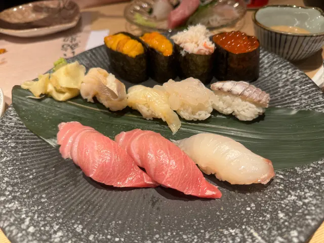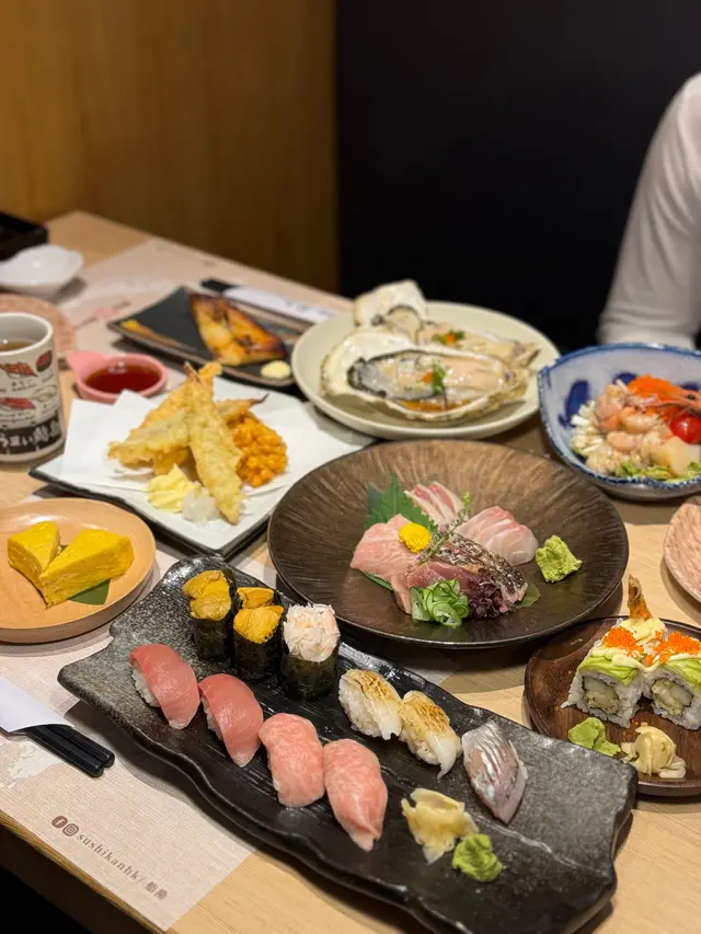 這天我們到海港城閒逛,午餐就到了以高質新鮮、日本直送食材的うまい鮨勘吃日本料理。餐廳以淺木裝潢,光線充足;備有卡座、沙發座,挺寬敞舒適的。餐牌有超過百款選擇手握壽司、蝦及貝類、灸燒、刺身、丼飯及其他日式料理。既然貴為東京人氣過江龍壽司店品牌的香港分店,我們這天就重點品嚐魚生壽司好了。明太子玉子燒 $92超多明太子非常滿足,香甜玉子燒,配上滿滿的微辣鹹鮮的明太子,口感豐富且滿足。炸粟米餅 $72入口酥脆可口,裡面是香甜的粟米,香口而不油膩。軟殼蟹手卷 $82軟殼蟹鮮甜酥脆,配合紫菜手卷,整體口感層次豐富。牛油果軟殼蟹卷 $155牛油果細膩軟滑加上軟殼蟹的香脆可口,還有大堆飛魚籽,味道豐富且層次分明,值得一嚐的創新壽司卷。北海丼 $298海膽、牡丹蝦、中鮪魚腩、松葉蟹肉、帆立貝、鯛魚、三文魚、三文魚籽魚生種類豐富,非常新鮮,帶子尤其肥美鮮甜,賣相美觀,份量十足。鮪魚壽司盛 (壽司6件+卷物2件+小卷4件) $398有齊鐵火卷、芝麻吞拿魚蓉卷、赤身、中拖羅及大拖羅,一次過滿足對吞拿魚的慾望;拖羅油脂分佈均勻,肉質柔軟,入口脂香豐盈,令人齒頰留香。灸燒壽司盛 (10件) $388經過輕灸燒過的魚生表面充滿油脂,炙火香脂香四溢,入口更是油潤度十足,讚。廚師發辦壽司盛 (12件) $59812件不同種類的壽司組合,新鮮度十足,造型美觀,味道豐富,是喜歡多元化口味的不錯選擇。…查看更多
