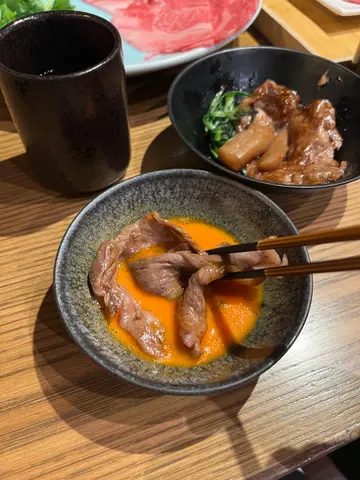 这间餐厅的寿喜烧一直拥有颇高的人气🥳 很幸运地只拨打数来个电话便预约到了歌赋街分店✌🏻✌🏻▫️店内有bar枱也有卡位,皆有专人代为烹煮,食客可专心打卡拍照😝📸 很适合在重要的日子来此庆祝一番🪅▫️❥$𝟳𝟯𝟬 𝕊𝕦𝕜𝕚𝕪𝕒𝕜𝕚 𝕊𝕖𝕥/ᴘᴇʀ ᴘᴇʀsᴏɴ 🥢~~~~~~~~~~~~~~~~有前菜/蒸物/野菜/寿喜烧/御饭/甜品,是男生都会吃得饱饱的份量👍🏻✂︎严选日本近江和牛,分别有肉眼、西冷和两款牛肩🐮 油花呈雪花网纹的近江牛看著已令人食指大动😻 烹调过后甜甜的口感软软嫩嫩,再来一口热乎乎的白米饭,当下跟同行友人默默地发出赞叹声🤤 幸福感满满🫶🏻🫶🏻 可无限量添加的白米饭跟寿喜烧简直是绝配,当晚吃了接近一个月的饭量🐽🐷 ✂︎师傅在烹调过程中会相继放入豆腐、粉丝、蒟蒻、冬菇、洋葱等蔬菜,令原本清新的食材变得浓郁美味🧅🥬 ✂︎吃得再饱也不可错过的御饭💖 看著师傅盛上和牛和鸡蛋混合而成的御饭,口水直流🤤 热乎乎又香又滑,撒上葱花多了一份清新的味道👅 美味程度满分💯😻✂︎澳洲牛舌另+$𝟭𝟬𝟬,薄薄的一片软软嫩嫩,口感很细腻😙 可以夹著葱花一并进食喔🫶🏻🫶🏻✂︎甜品中的牛乳奶冻浓郁得有点夸张🤣 跟友人马上吞下日本梨粒减少腻感🍐…查看更多