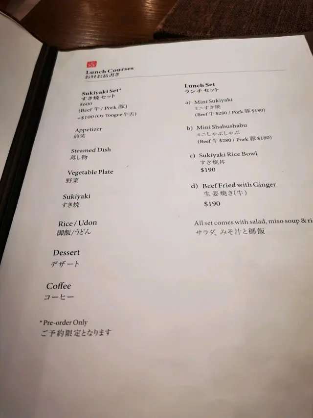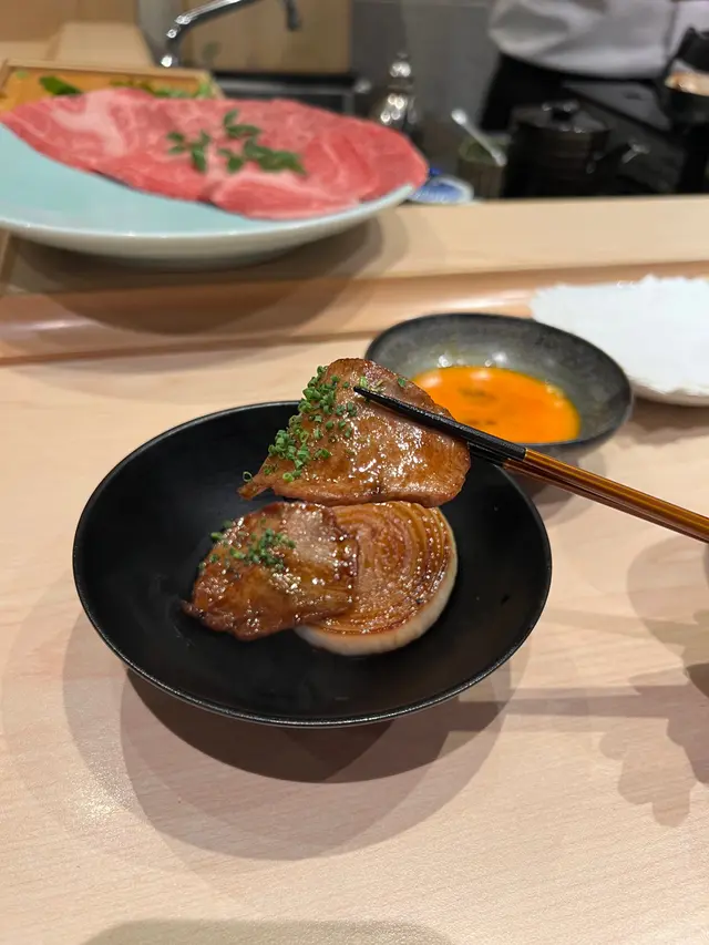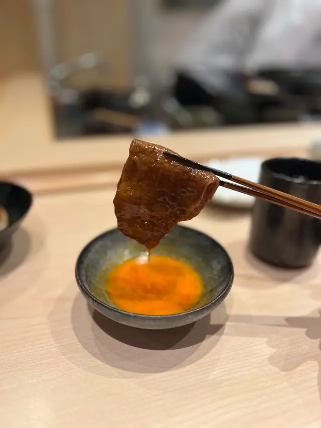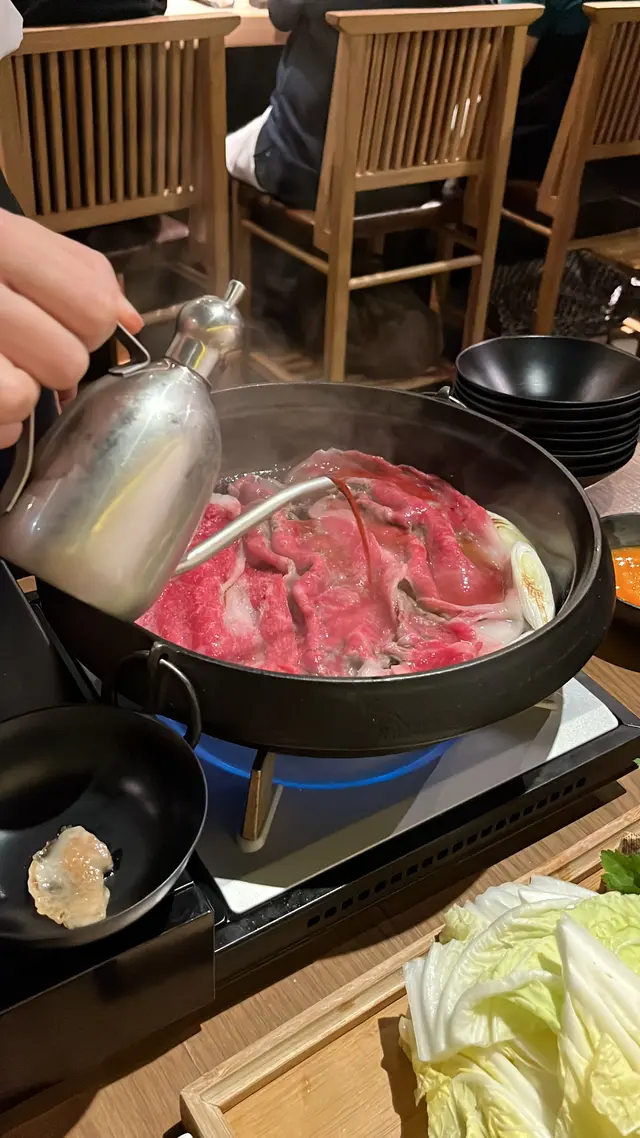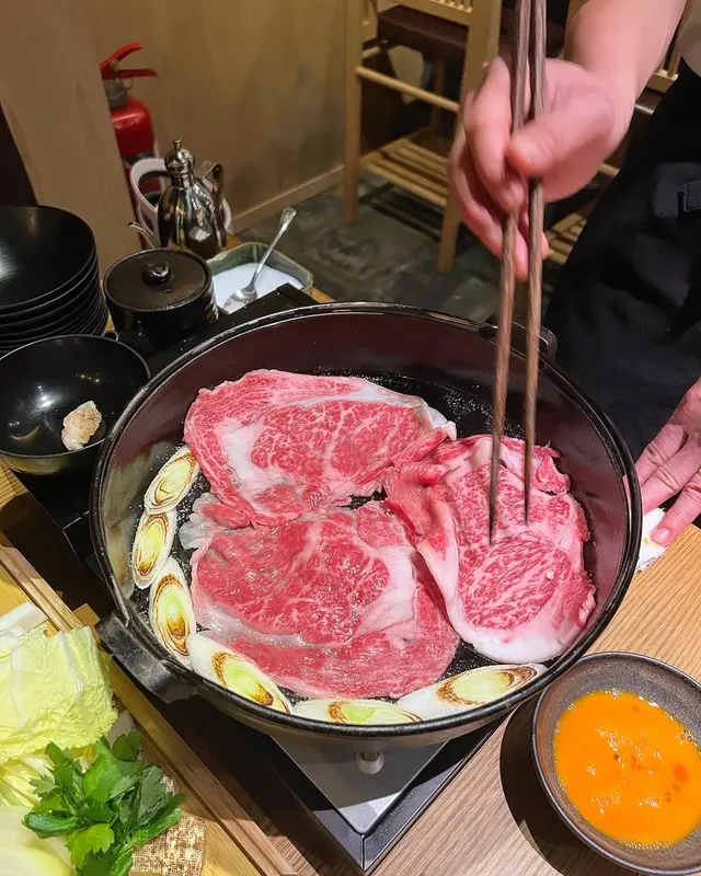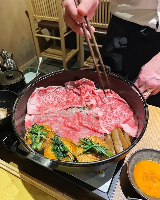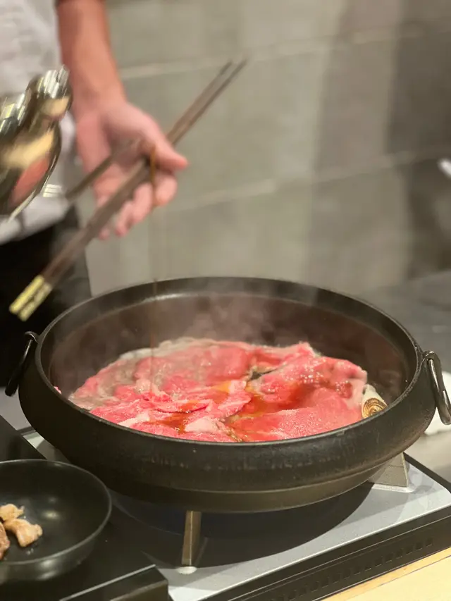 這間餐廳的壽喜燒一直擁有頗高的人氣🥳 很幸運地只撥打數來個電話便預約到了歌賦街分店✌🏻✌🏻▫️店內有bar枱也有卡位,皆有專人代為烹煮,食客可專心打卡拍照😝📸 很適合在重要的日子來此慶祝一番🪅▫️❥$𝟳𝟯𝟬 𝕊𝕦𝕜𝕚𝕪𝕒𝕜𝕚 𝕊𝕖𝕥/ᴘᴇʀ ᴘᴇʀsᴏɴ 🥢~~~~~~~~~~~~~~~~有前菜/蒸物/野菜/壽喜燒/御飯/甜品,是男生都會吃得飽飽的份量👍🏻✂︎嚴選日本近江和牛,分別有肉眼、西冷和兩款牛肩🐮 油花呈雪花網紋的近江牛看著已令人食指大動😻 烹調過後甜甜的口感軟軟嫩嫩,再來一口熱乎乎的白米飯,當下跟同行友人默默地發出讚嘆聲🤤 幸福感滿滿🫶🏻🫶🏻 可無限量添加的白米飯跟壽喜燒簡直是絕配,當晚吃了接近一個月的飯量🐽🐷 ✂︎師傅在烹調過程中會相繼放入豆腐、粉絲、蒟蒻、冬菇、洋蔥等蔬菜,令原本清新的食材變得濃郁美味🧅🥬 ✂︎吃得再飽也不可錯過的御飯💖 看著師傅盛上和牛和雞蛋混合而成的御飯,口水直流🤤 熱乎乎又香又滑,撒上蔥花多了一份清新的味道👅 美味程度滿分💯😻✂︎澳洲牛舌另+$𝟭𝟬𝟬,薄薄的一片軟軟嫩嫩,口感很細膩😙 可以夾著蔥花一併進食喔🫶🏻🫶🏻✂︎甜品中的牛乳奶凍濃郁得有點誇張🤣 跟友人馬上吞下日本梨粒減少膩感🍐…查看更多