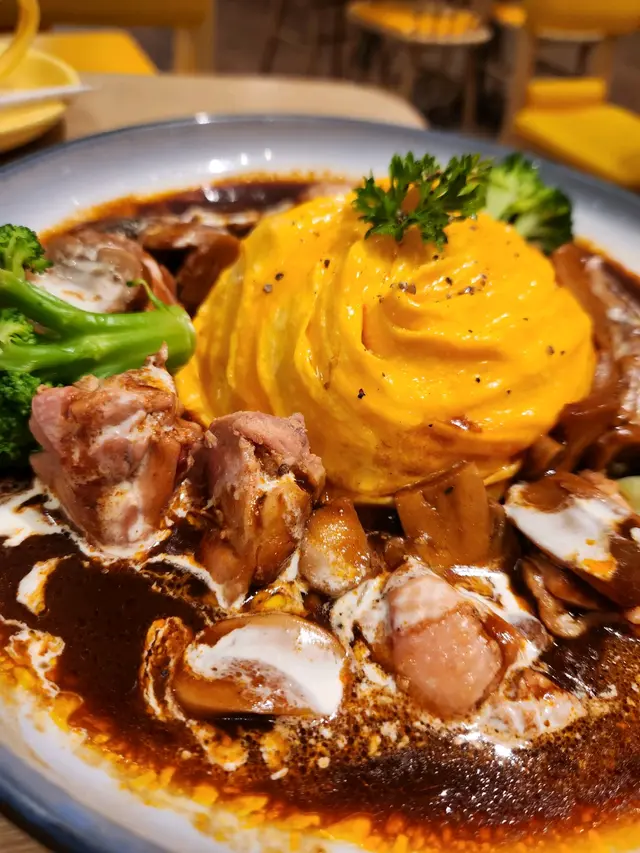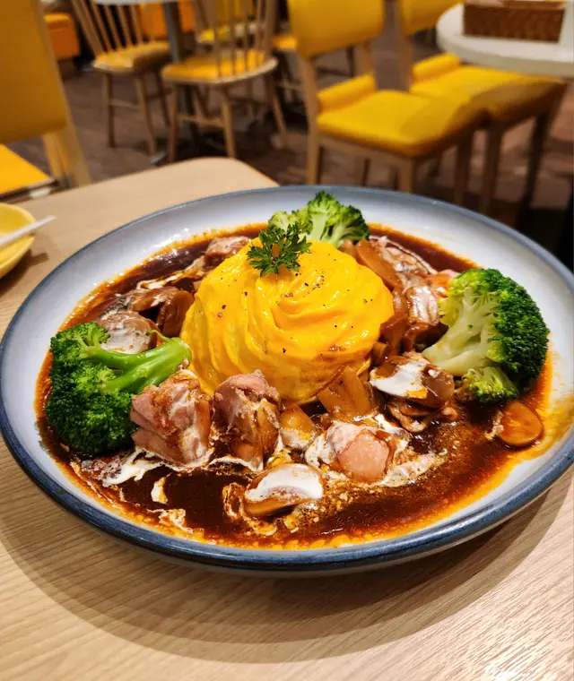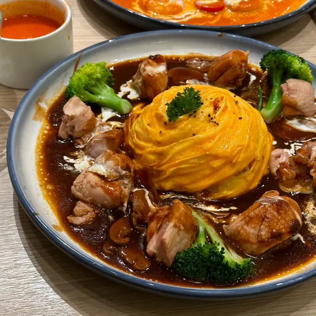 適逢週末與朋友兩人來到九龍灣,正苦惱晚上在這個大家都覓食的高峰時段食什麼才好。這間餐廳周不時都會見到,但一直未有入去食過。這次決定進去一嘗。不用等已有位。兩人位還有得揀。打開menu都是雞蛋料理。果然是Tamogo主題餐廳 (連附碟都是蛋🍳)。對蛋類過敏人士恐怕要卻步。幾經篩選點了 燉牛肉蛋包飯 和 季節限定的栗子梳乎厘班戟。燉牛肉軟腍入味。醬汁不只是充足,更是有突,撈埋蛋包飯,正!梳乎厘班戟鬆軟,但栗子味就一般喇。其他口味或許更佳吧。最後人手一人一杯櫻花草莓鮮奶和珍珠奶茶。飽足!完食!查看更多