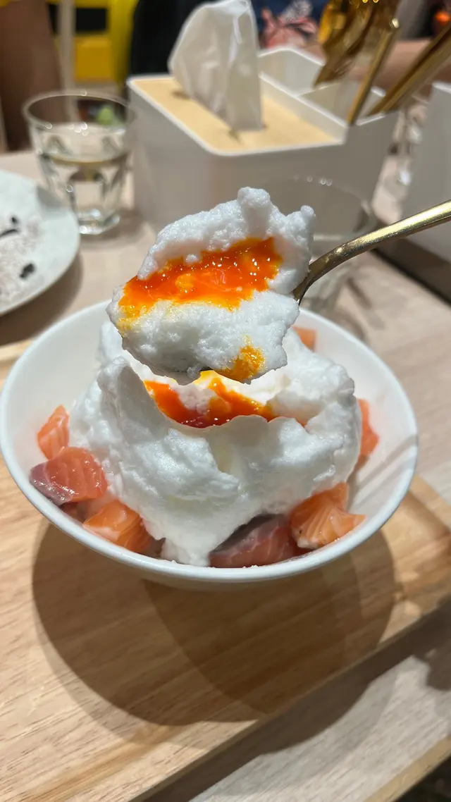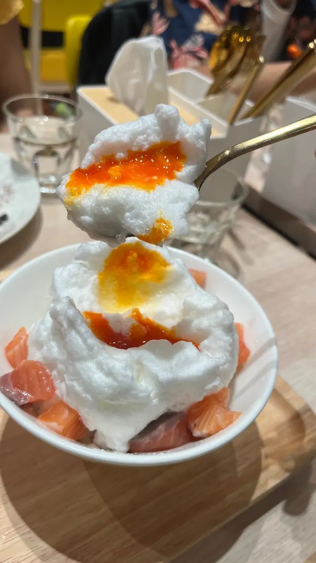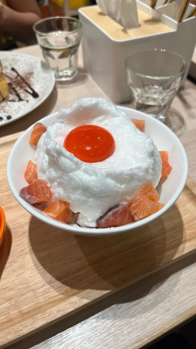 鍾意食蛋既一定要試。呢間用蛋黎主黎既日式餐廳創意不簡單。單單係蛋包飯以經有好多唔同風格,造型都有落過心意,而且做法不容易,係咖喱汁倒入甜蛋薄上加日本米,蛋白要打到起泡,蛋黃要分煮煮到佢流心。這款起泡蛋白三文魚飯絕對夠食,係男生既份量斑剔賣相也吸引!很有彈性!查看更多