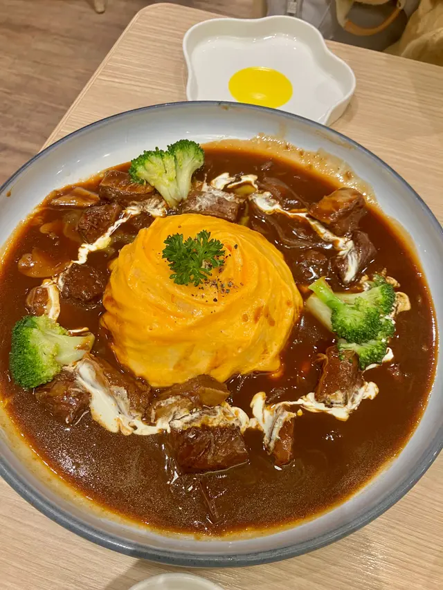 今日第一次試呢間餐廳,環境乾淨,服務都正常,今日叫燉牛肉蛋包飯轉套餐,旦吳滑,味道普通,埋單146蚊,對唔住價錢.優點今日來少人不用等位…………………………..查看更多