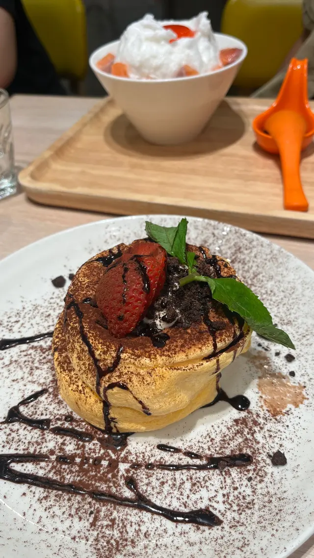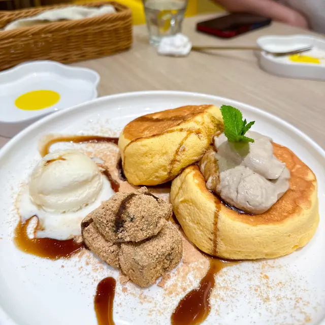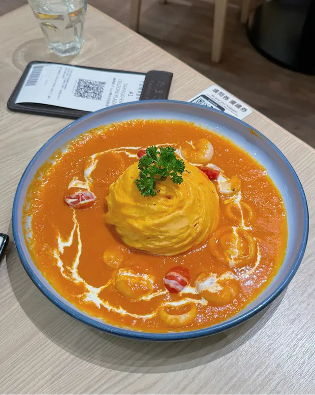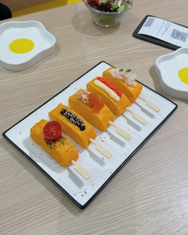 🍴海鮮蕃茄忌廉蛋包飯 $108 (6/10)個蛋好滑,不過唔係流心嗰種,個飯係白飯冇用蕃茄汁炒過,有啲扣分同唔正宗,海鮮有蝦有魷魚,蝦肉爽口魷魚彈牙,個份量比較少,每樣得三舊,味道酸甜正常。🍴煙肉明太子忌廉意粉(配慢煮蛋) $88 (2/10)呢個係好hea好淡口,淨係食到少少煙肉味,明太子忌廉係完全冇味,唔合格,淡口到完全唔覺食緊忌廉意粉。🍴 味噌湯/是日西湯及迷你沙律套餐 +$15 (7/10)西湯正常有甘荀味,沙律可以。🍴 特製 5 款玉子串燒 $78 (7.5/10)分別係蕃茄/海藻醬/親子三文魚/明太子沙律/蟹肉,玉子好嫩滑,不過蛋味唔濃,親子三文魚/明太子沙律/蟹肉都好食~🍴 宇治抹茶梳乎厘班戟 $98 (3/10)班戟太濕太黐口,冇乜蛋味空氣感唔夠,都係唔合格,抹茶雪糕同紅豆正常。🍴香蕉朱古力方塊 $98 (7.5/10)冇諗過呢個好食,方塊香脆有少少蜜糖,朱古力同香蕉好夾正常,仲有個雲尼拿雪糕~推薦指數:6/10玉子串燒蛋包飯嘅蛋菜式係ok的,正常不過不失,意粉同梳乎厘班戟唔得,食甜品方塊穩陣。查看更多