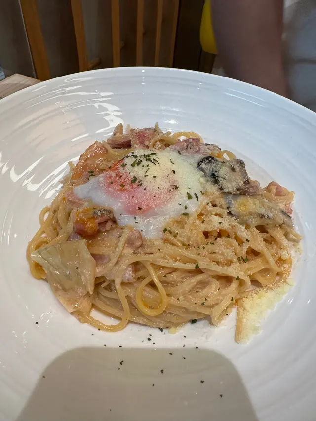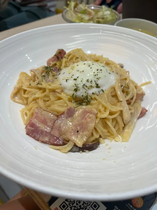 去元朗貪方便食野就梗係去yoho🤪🤪🤪🤪行下行下見到係專食日本蛋料理🍳🍳🍳🍳就試試佢Lunch set包哂湯同沙律🥗🥗🥗🥗講到蛋料理,點少得親子don🐥🐣🐥🐣蛋汁金黃,份量夠哂撈飯🥚🥚🥚🥚雞肉嫩滑,但d蛋邊位有d熟🐥🐥🐥🐥配個山椒醬點雞肉食,幾特別溫泉蛋carbonara🥚🥚🥚🥚溫泉蛋黃個色比熟左既色勁加橙篤穿佢好治癒😋😋😋😋煙肉有煎香過不錯既查看更多