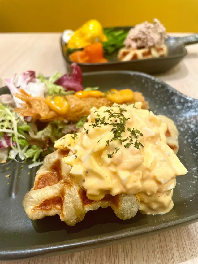 吞拿魚沙律班尼迪蛋牛角窩夫