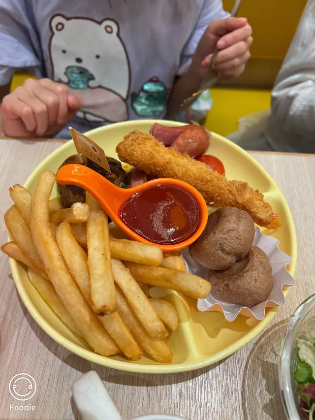 20240301Tamago-EN @Yoho mall有兩款兒童餐@$98-99我哋揀咗『炸雞』茄意、炸蝦一條、炸雞兩件三粒炸薯粒配茄汁🥫西蘭花、小甘旬、車厘茄配凍飲另外點多份菘露炸薯條@48兒童餐份量足食物都以小朋友口味為主伴菜係烚👍🏻可惜炸雞固唔好味(唔新鮮)菘露薯條醬汁另上👍🏻客人要求才付上茄汁更好免浪費兒童餐最吸引米豬係代幣扭蛋機禮物一般但小朋友有啲嘢揸手就好滿足了😂埋單161查看更多