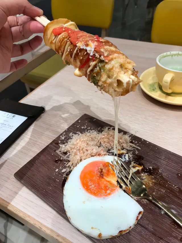 Hashimaki is like a Japanese grilled pancake rolled on a pair of wooden chopsticks. It’s stuffed with cheese and topped with a runny egg and mountain of Bonito flakes, drizzled with mentaiko sauce, mayonnaise and sesame seeds. The taste is quite good and the texture of the pancake is like the batter used in takoyaki. However I was unlucky enough to have waited 45 minutes for this, cos a new kitchen staff was on duty and it was his first time learning to make the hashimaki. Nonetheless I’m glad that he nailed it at last. The carbonara was standard and good. The poached egg on the top was perfect. Can’t resist to poke it and take a dirty picture. …查看更多