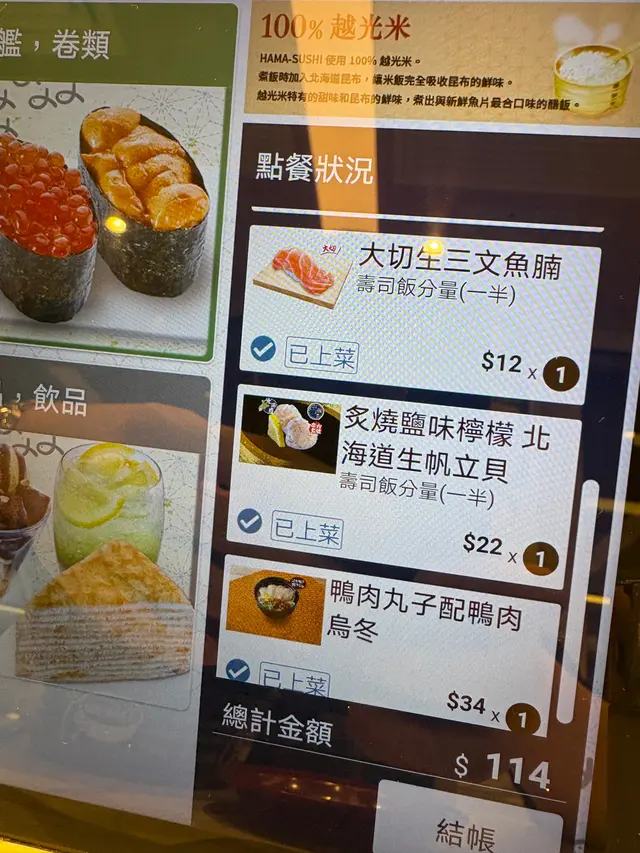 托朋友介紹,先知有這間餐廳,原來已經風靡一時,現在人潮不如以往。剛好,我地才會有緣來到這間不用排隊的餐廳了。一坐下便感覺到好像壽司朗,但裝潢比較光鮮和新穎,比較適合本人,我地隨意叫了些吞拿、長鰭吞拿、蔥花魚蓉、鯖魚及鯛魚等,這些都好新鮮和乾淨。最特別的是他們的拉麵,這個拉麵的等級和性價比超高,只要$29就有,而且有糖心蛋,足以俘虜我嘅味蕾。最後,佢地整體的質素當然不是手握的那麼高質,但以出餐快、食物品質合理和環境舒適來說,我真係比個服字佢。PS: 今次無試到杯凍啡,下次再黎試啦 😽…查看更多