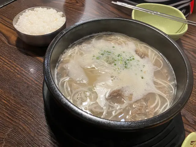 这一锅汤饭非常足料!锅内放了原只童子鸡,鸡壳内再藏有米饭、蒜头等食材。糯米饭早已炖至软烂。鸡髀位置的肉质相对嫩滑:),其余的就偏柴一点。汤头除了有鸡的鲜香,还有淡淡的人参甘甜味