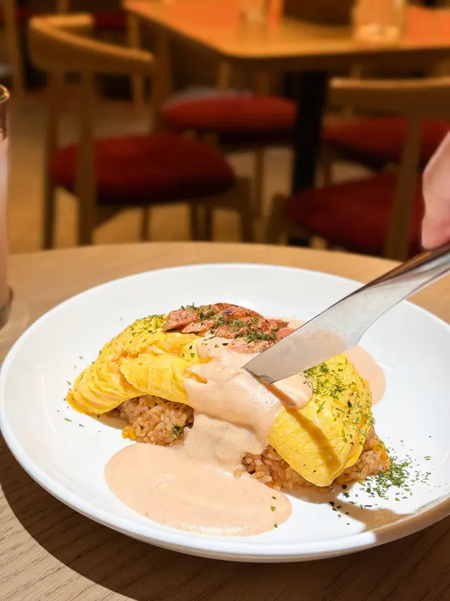 來自日本東京🇯🇵嘅超人氣日式蛋包飯專門店, 最近有新menu🤩全新推出4️⃣款明太子菜式, 包括:火炙原片明太子蛋包飯🍛、超濃郁火炙原片明太子意粉🍝、明太子醬汁炸蝦堡🍔、明太子釀雞翼配明太子薯仔沙律🥗另外, 日本白桃系列甜品同步登場❣️ 選用時令白桃🍑, 帶嚟白桃梳乎厘、白桃窩夫配白桃雪葩、白桃芭菲𓌈⸝⸝火炙原片明太子蛋包飯 推介👍🏻 表面鋪上4塊原片火炙明太子, 外層火炙至微焦香, 帶出明太子獨特嘅鮮味同鹹香~蛋包飯用上3隻日本雞蛋🥚, 炒成流心滑蛋, 蛋味香濃, 內裏藏有mozzarella芝士🧀, 一刀切開蛋皮, 蛋漿緩緩流出, 蛋香與芝士完美融合。旁邊嘅明太子醬汁則以北海道3.6牛乳🥛、福岡明太子慢火調製而成茄汁飯採用日本七星米🍚, 米飯粒粒分明, 蕃茄汁以自家番茄湯底加洋蔥🧅、甘筍🥕等蔬菜燉煮, 配料仲有粟米粒、青豆等, 飯粒吸滿茄汁, 配埋滑蛋、明太子, 非常滋味 •͈౿•͈ 🍝火炙原片明太子意粉以自家熬製嘅番茄及蔬菜湯作為基底, 融合忌廉、明太子等烹調成滑順濃厚嘅醬汁。意粉煮至 Al dente, 口感彈牙, 每一條意粉都掛滿濃郁明太子醬汁, 帶鹹香鮮味, 加上三文魚籽、火炙原片明太子、紫菜點綴, 味道充滿層次~🥞日式白桃梳乎厘即叫即製, 大概要等20分鐘。梳乎厘班戟非常蓬鬆, 入口軟綿綿, 蛋味香濃, 充滿空氣感!配上鮮甜細膩嘅白桃果肉🍑, 幸福感🆙🍨抹茶芭菲以抹茶軟雪糕、白玉、抹茶蕨餅等組成, 裏面夾雜着一層忌廉、紅豆🫘、朱古力脆粒、抹茶凍。抹茶軟雪糕茶味清香🍵, 帶奶香, 成個組合好夾!…查看更多