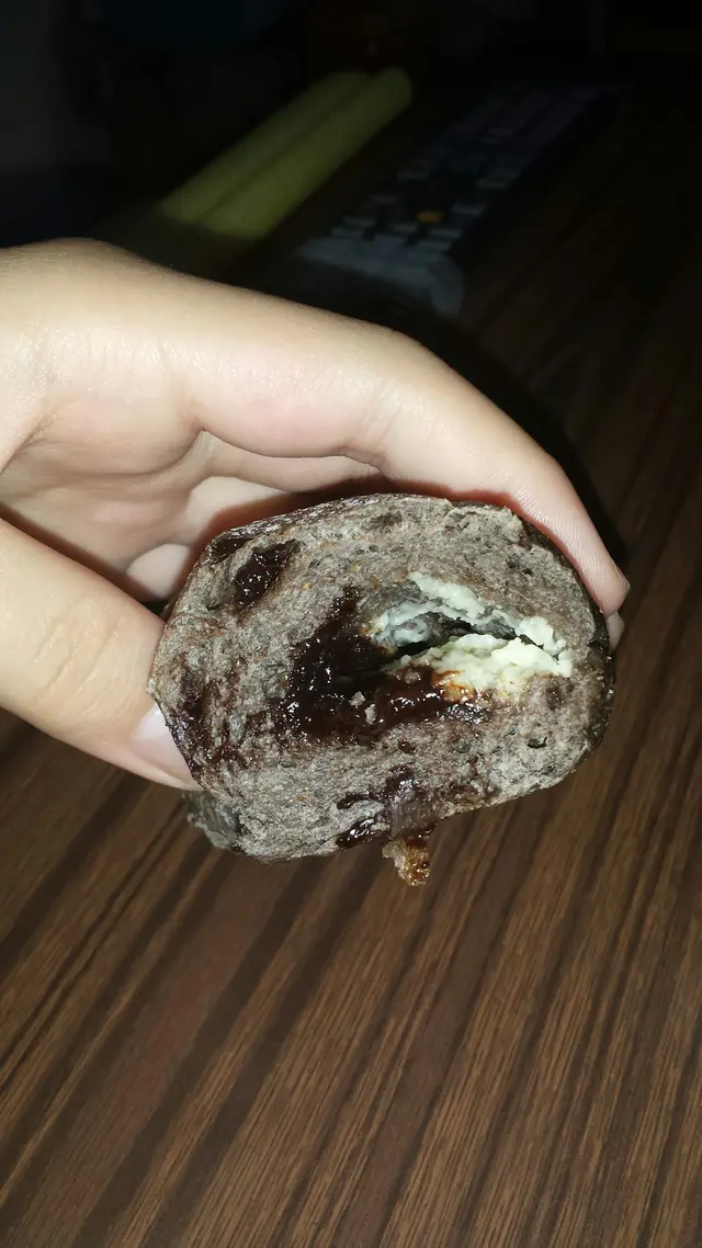 這個黑眼豆豆,開頭仲以為係無餡既朱古力餐包,原來入面有濃郁既朱古力醬+朱古力粒粒,叮幾秒先食仲正呀