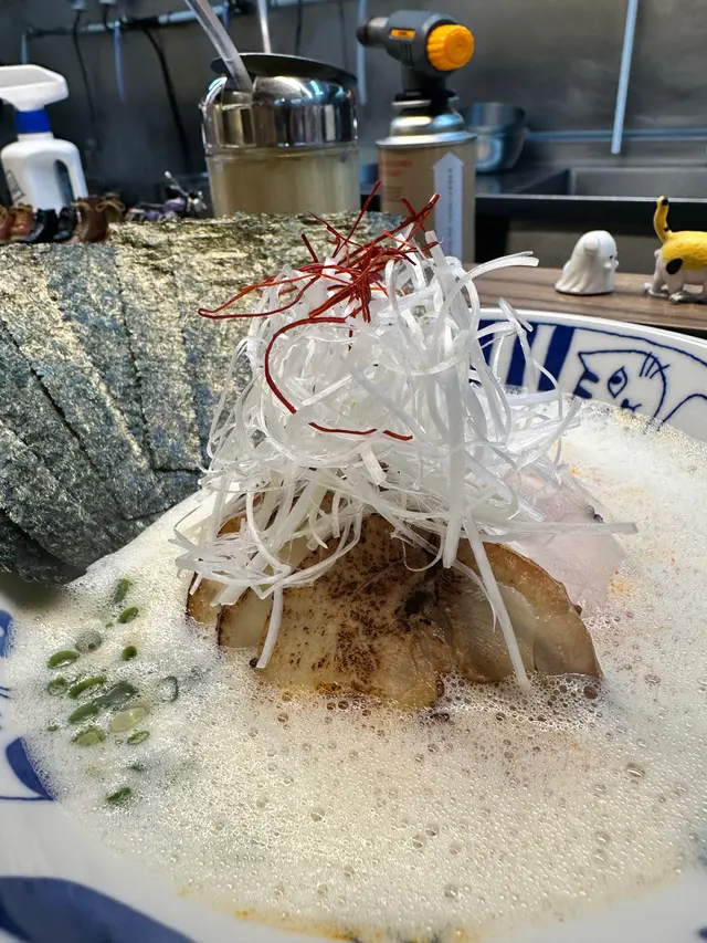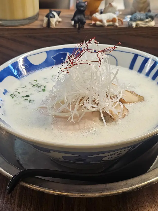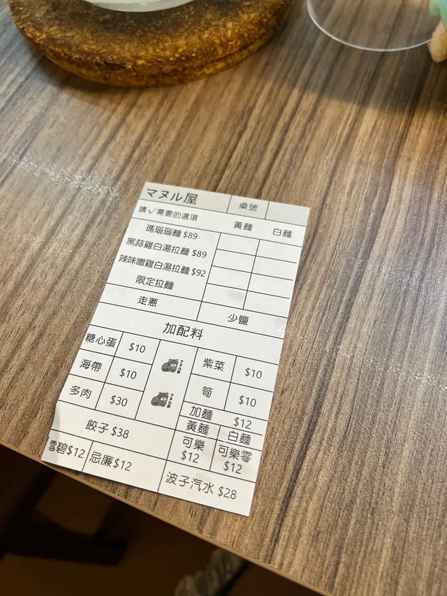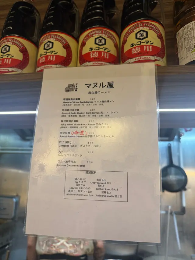 最近見到唔少人推介呢間牛頭角雞白湯拉麵店《マヌル屋》,話係日本人主理,加上店入面貼滿貓貓畫🧡 即刻被吸引到,約咗朋友一齊嚟試!我哋平日黃昏7點到達,門口已經有2個人等緊,但翻枱速度好快,大約等咗10分鐘就有位👏🏻 仲要讚下店員,見天氣熱,會主動奉上凍水,好貼心💦店內大約得十幾個位,全是 bar 枱位,坐位格局高度還原日本拉麵店風格~牆身貼滿各款貓咪畫作,好療癒😻 望住貓貓食麵,心情都好啲!🍜 拉麵只有三款,分別為係瑪瑙瑙麵、黑蒜雞白湯拉麵以及辣味噌雞白湯拉麵。可選粗身有咬口嘅黃麵或幼身彈牙嘅白麵~😽瑪瑙瑙麵($89)* 追加溏心蛋($10)+ 紫菜($10)|配黃麵湯底用雞白湯打到起泡,入口清甜香滑,配黃麵啱啱好。叉燒肥瘦適中,雞胸肉嫩滑無柴味。加埋溏心蛋同紫菜,成碗麵更豐富!🧄 黑蒜雞白湯拉麵($89)* 追加溏心蛋 x2($20)|配白麵黑蒜香氣撲鼻,混合雞湯後味道更濃郁但唔膩,白麵彈牙夠掛湯。💡P.S. 麵量唔算多,建議加配料會更滿足;半熟溏心蛋值得加,流心蛋黃超好味👍🏻…查看更多