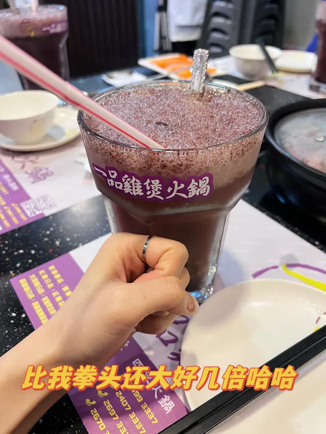 🐔麻辣秘制鸡煲我们四个女生吃一只刚好~点的中辣,感觉一点点辣,能吃辣的朋友可以点辣一点。鸡块很入味,切的小小的,超喜欢!吃起来很方便。是甜咸口的,甜味其实还蛮重的。干锅鸡煲上来可以先吃一会,等吃腻了再加水煮配配菜。 🥗配菜都是需要自己点的,我们点了蟹柳,土豆,响铃卷和出前一丁,真的都推荐,土豆可以多煮一会,入味一点会很好吃。 🥤饮料我们每个人都点了招牌野生葡萄汁,超级无敌大一杯,一只手端起来很酸的程度哈哈。有点贵49hkd一杯,但是真的必点,因为吃多了会有点腻,用葡萄汁综合一下刚好。 📧综合评价:可以说五星推荐了吧~人均160+,感觉性价比还可以的,冬天去吃点这种热乎的东西刚好!如果来港还没吃过鸡煲的朋友推荐尝尝,我们四个吃完就说真的好吃还会再来的~查看更多