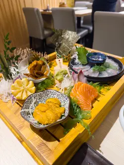 同朋友喺尖沙咀行街,无意之中发现一栋大厦原来全部都系食肆,见到有间日本嘢都几吸引就上去试吓小店舖头细细,座位不多,但干净整洁,有日本风情,喺尖沙咀嚟讲都算系一间价钱合理CP值高嘅日本料理鱼生新鲜高质,牛肉锅热辣辣啱哂天气凉凉地食,海胆炒饭👍🏻呢条街夜晚唔算多人,要上楼就更加少人,希望大家都支持本地小店,试下行街抬头望下其实香港仲有好多高质餐厅,服务好坐得舒服嘅餐厅,见同一栋大厦都有几间餐厅下次可以试下