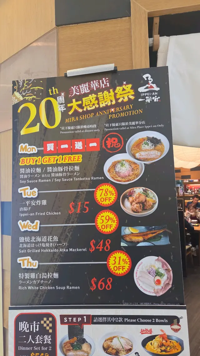一平安 (尖沙咀) 网上订位享低至8折优惠并赚Rice Dollars 网址: https://s.openrice.com/QrLS0M3uF00 地址: 香港尖沙咀彌敦道132號美麗華商場1期2樓203號舖 电话: +852 23755330