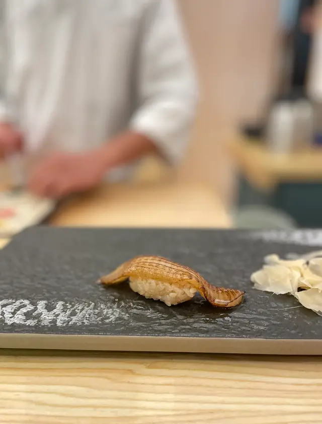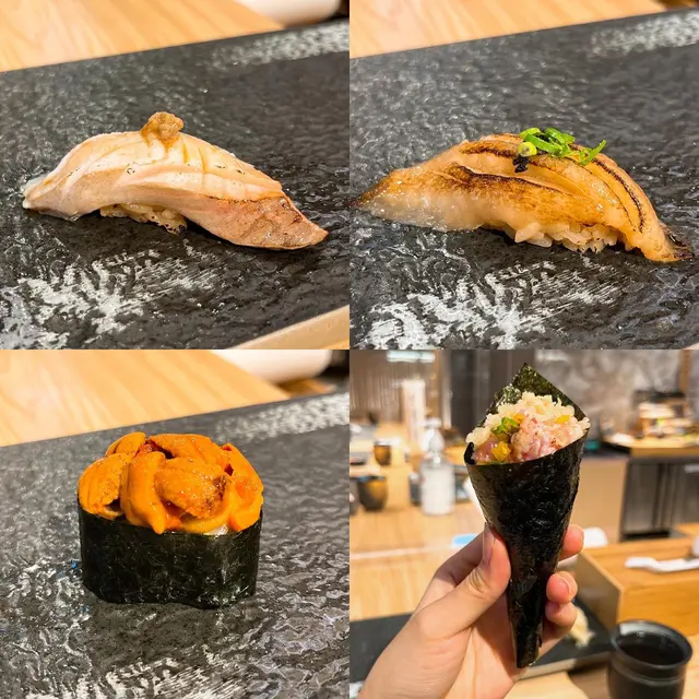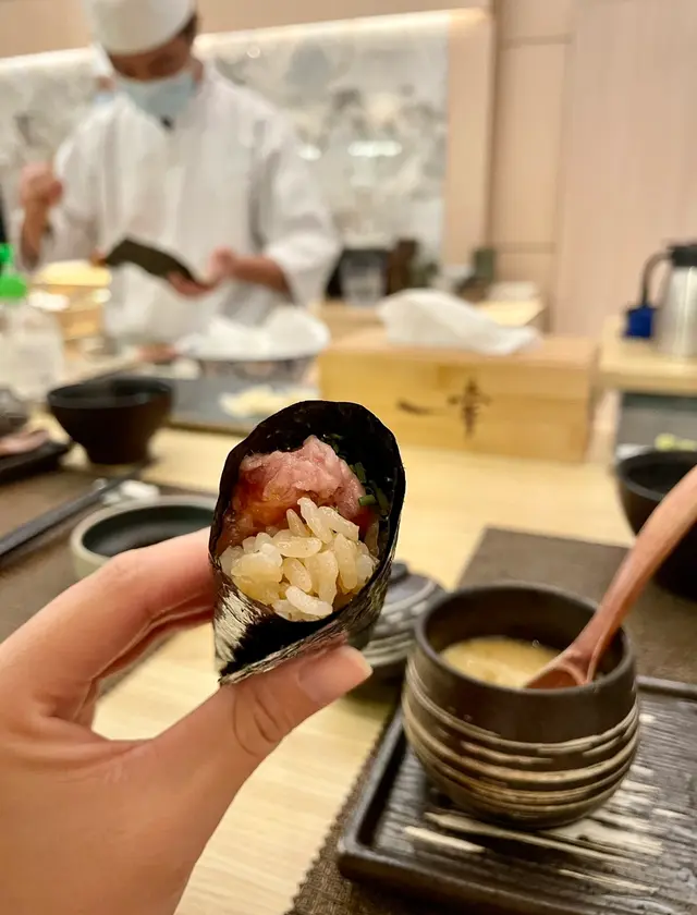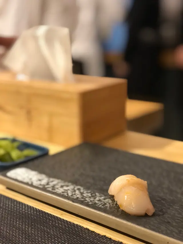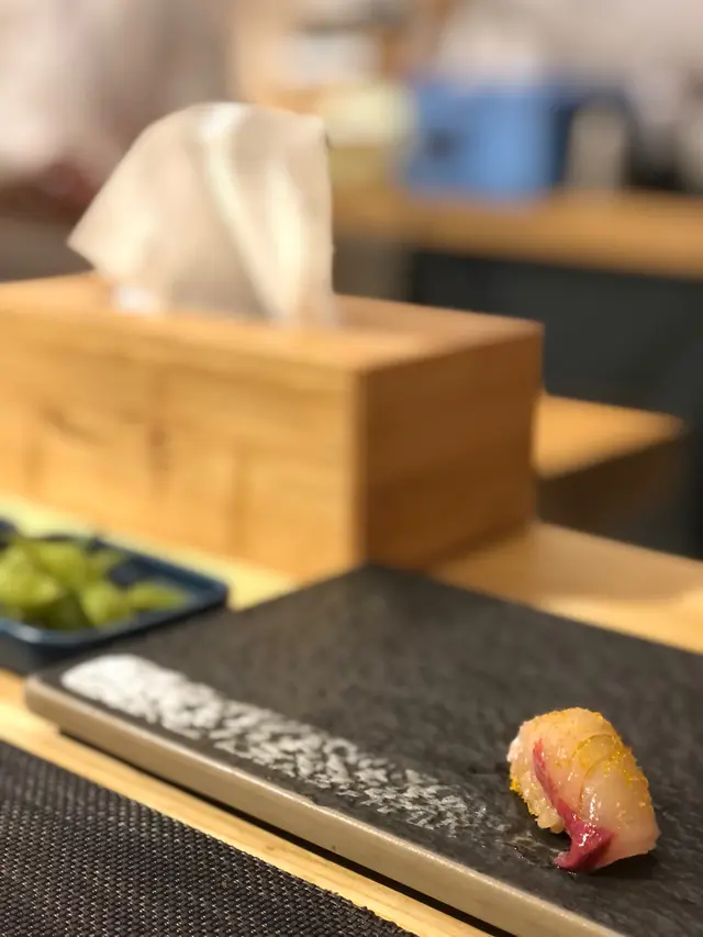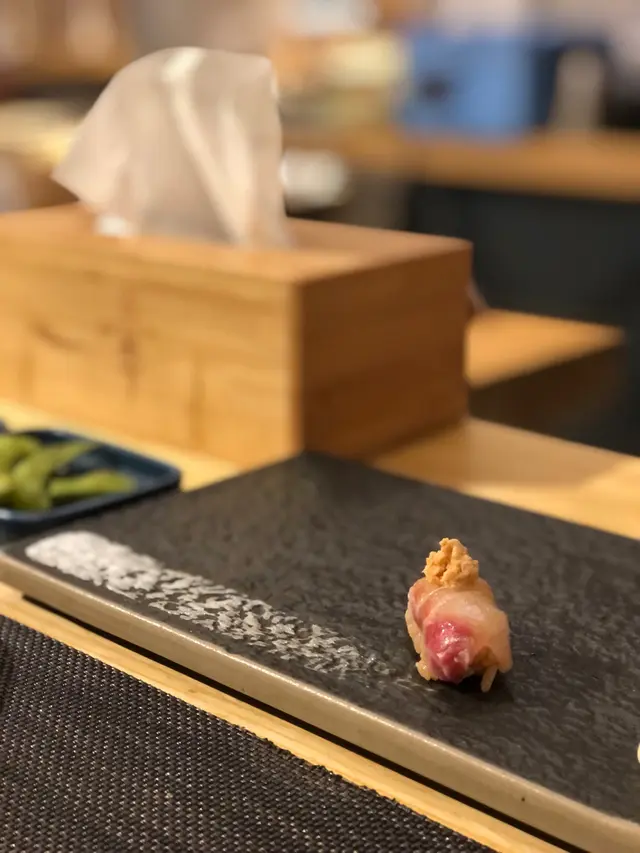 多謝我的女兒常到不同地方食的好嘢介紹,今次去了這間尖沙咀的一幸( 奧媽卡些)。 裝修其實很簡約星期六下午2時 ,剛剛圍住整個吧枱(滿客) 。今次要預約的,但以人頭計每人都不需要4一5百元 ,性價比實在太高了。由於這個是套餐是每日12件至15件不等的,先來了一個有雞湯及少量雞蓉的茶碗蒸,是我首次覺得最特別及有心思的茶碗蒸,雖然份量不多但入口不知只是蛋,而是淡淡雞湯的精華,口感香濃順滑。最深刻的是它的甜蝦加白蝦壽司, 不知從何而來的芒果味,帶出蝦的鮮甜。 吃到最後的吞拿魚用壽司卷物 淡淡 吞拿魚湧日式蘿蔔粒 碎切的香蔥菜口感豐富,滋味十足。 他們的選材十分特別, 其中特別的右口魚與眾不同, 爽口油脂豐富。 另外,北海道海膽軍艦 ,非常鮮甜。廚師健談,每一款式都詳細介紹, 選材非常特別,也是坊間很少吃到的。 絕對是值得推薦。性價