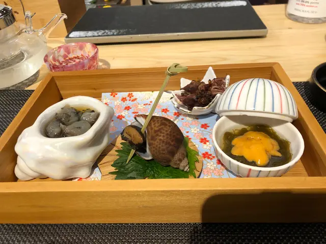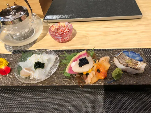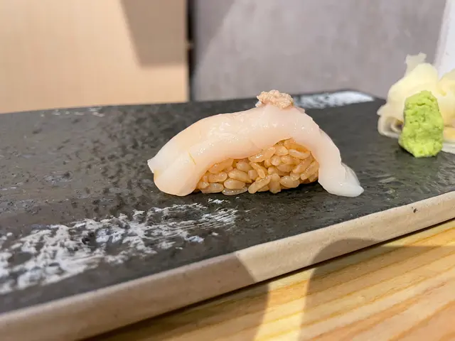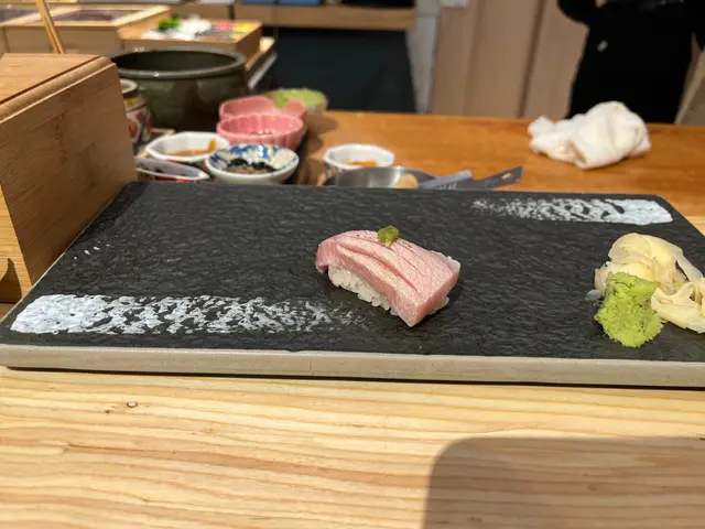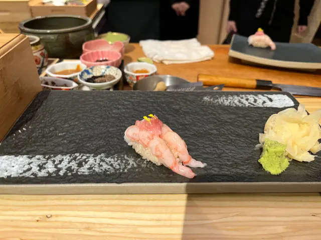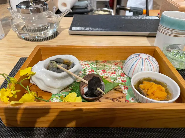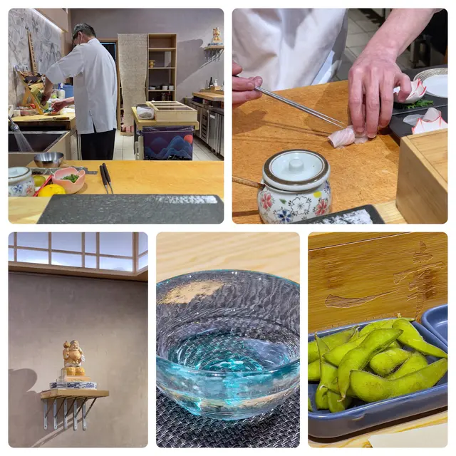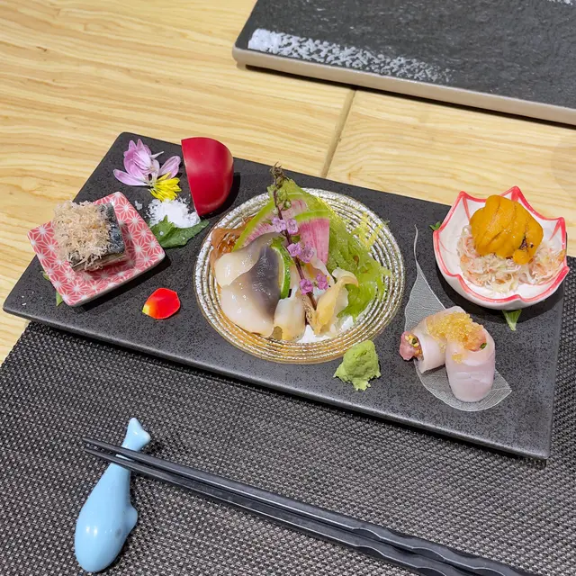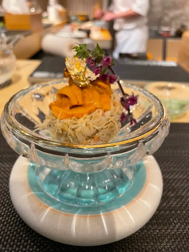 多謝我的女兒常到不同地方食的好嘢介紹,今次去了這間尖沙咀的一幸( 奧媽卡些)。 裝修其實很簡約星期六下午2時 ,剛剛圍住整個吧枱(滿客) 。今次要預約的,但以人頭計每人都不需要4一5百元 ,性價比實在太高了。由於這個是套餐是每日12件至15件不等的,先來了一個有雞湯及少量雞蓉的茶碗蒸,是我首次覺得最特別及有心思的茶碗蒸,雖然份量不多但入口不知只是蛋,而是淡淡雞湯的精華,口感香濃順滑。最深刻的是它的甜蝦加白蝦壽司, 不知從何而來的芒果味,帶出蝦的鮮甜。 吃到最後的吞拿魚用壽司卷物 淡淡 吞拿魚湧日式蘿蔔粒 碎切的香蔥菜口感豐富,滋味十足。 他們的選材十分特別, 其中特別的右口魚與眾不同, 爽口油脂豐富。 另外,北海道海膽軍艦 ,非常鮮甜。廚師健談,每一款式都詳細介紹, 選材非常特別,也是坊間很少吃到的。 絕對是值得推薦。性價