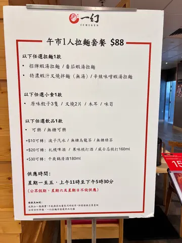 浓汤虾面得个咸字 如果系三高人士切勿食用高钠高脂 另外叉烧饭啲饭好似冷饭 完全唔热 口咁差 叉烧饭系肥猪肉粒饭 教人失望 如果三高人士切勿食饺子因为系高立食品 会食坏身体大家要留意 如果同日本嘅拉面畀根本冇得畀 可能因为要就价钱所以啲质素就下降 环境并不舒适因为 有一部分位置人来人往会 很滋扰查看更多