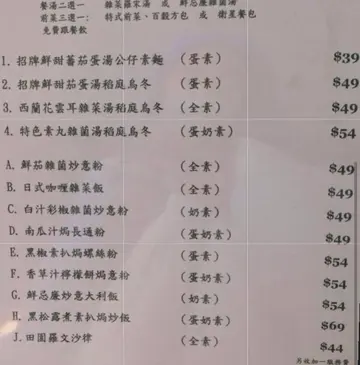 今日试咗观塘开咗嘅一心素食。虽然贵D,但味道唔错。又有沙律主菜餐茶同汤。打工仔用来做午餐认真唔错,环境又坐得舒服。最紧要系有得拣又写明边D有奶蛋~咁样唔同嘅素食者都会知道边样自己食得,非常细心。