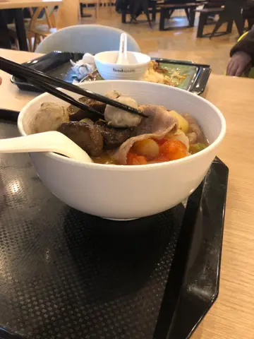 新年提早收炉, 放假出街辨年货, 四处都系人人人, 大家都忙著过年, 所以午餐都系随便食碗面算吧.车仔面选择性较多, 就算拣2𩠌都唔会比人黑面. 不过黎到又觉得样样𩠌都想食, 所以要左猪手+猪红+鱼皮饺蕃茄汤米线.鱼皮饺有好多粒, 个皮几薄, 馅料足丰满, 就算系咪自家包, 我都觉得呢个饺好味. 猪红好滑, 咬落爽爽地, QQ地, 有口感.主菜仲有猪手, 大大旧呢啱晒口味, 个肉煮得好腍, 但又唔系一食就散, 味道够唔会太咸.D米线好爽口, 唔会太腍过左火, 整体D𩠌都几多, 唔会唔够饱.…查看更多