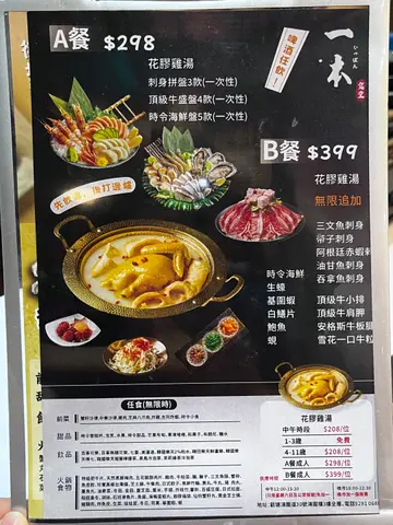 最近天气凉凉地 好岩打边炉,个场地几大 座位阔,重点系做到日式既干净,坐得舒服有A餐orB餐两个选择,两个餐同样已经包咗… 🦐刺身拼盘:赤虾+三文鱼腩+带子🐮顶级牛盛:牛小排+牛肩胛+安格斯牛板腱+雪花一口牛🦪是令海鲜盘:基围虾+海蚬+鳝片+鲍鱼+生蚝A餐同B餐嘅分别在于A餐$298:以上三项一次性黎晒B餐$399:以上三项无限追加我哋就拣咗A餐 因为除咗呢三项之外雪柜有好多款式食物任夹🤭🤭出去夹既海鲜都好新鲜三文鱼头/ 鱼腩片/ 虾/ 蚬蚬仔只只唞紧气 唔会有沙滚熟咗 爽口弹牙 粒粒都有海水味拣佢做今晚MVP另一个亮点用热柜暖住炸物用夹夹响铃时 会轻轻有‘咔’一声未入口已经知好脆*有炸榴梿波🤩可能好耐冇食榴梿 眼前一亮系我哋不断夹嘢食嘅时候店员姐姐已经上咗个汤底返枱 我哋急不及待将花胶同鸡放落去汤色金黄 鸡肉嫩滑 花胶煲得软软入口就是顺喉鲜滑 有金华火腿嘅咸香每一口都充满胶质 嘴唇好似要黏住一样呢个价钱净系饮煲汤 我都觉得值每人先叹两碗鸡汤 之后再加汤打边炉*啤酒任饮⚠️OMG*饮品选择好多,除咗韩式罐装饮品 仲有自家制乌龙茶 茉莉花茶*雪糕拣咗香港制造品牌🫶🏻*必须要夹好多海鲜*真。无限时 同frd子食到尽兴先走 唔会有人‘善意提醒’(OpenRice建议提供单据)…查看更多