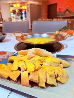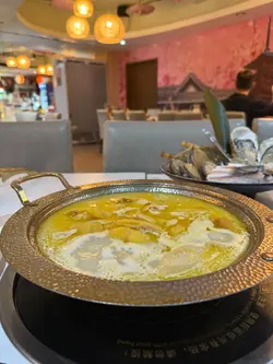 任飲任食放題一街都係,要突圍而出,總要帶點特色。「一本食堂」位於牛頭角及觀塘交界嘅鴻圖樓三樓全層,係以招牌花膠雞湯作招徠,先飲雞湯,後打邊爐,岩曬鍾意飲湯嘅朋友。升級版以$388價位,提供濃郁花膠雞湯、海鮮拼盤、刺身、牛小排 (一次性),後續無限時任食前菜、火鍋配料、甜品及啤酒汽水等等……金黃色嘅雞湯賣相非常吸引,湯底無加鹽及味精,真實呈現原雞湯嘅鮮味,重口味者可自行放鹽/雞汁。雞件非常嫩滑,連雞胸都唔會柴,肉味適中;花膠筒有數件,正常發揮。整體而言都幾好食,但飲完幾碗湯,食埋雞及花膠都有一半飽,真廢……刺身三點分別係三文魚、帆立貝及紅蝦刺身:三文魚無得唔好食,帆立貝幼嫩,紅蝦刺身亦夠新鮮及爽滑。海鮮拼盤有時令海鮮五款,分別係鮮鮑魚、沙白、白鱔、生蠔,鮮蝦:鮑魚爽口鮮味,但無去內臟要自行處理;沙白肉質鮑滿;白鱔片質感亦爽滑,無咩骨;生蠔幾大隻,但蠔味適中,正常發揮無咩特別。頂級牛盛盤共有四款,分別係牛小排Prime、牛肩胛Prime、安格斯牛板腱,雪花一口和牛粒:牛小排油花及肉味均較濃郁,相對出色。食到呢度其實已經飽,不過都係自助區隨便拎左啲野食,熟食有台灣黑椒腸、關東煮;火鍋配料有幾十款,詳情餐單都有寫,基本發揮,無咩highlight …查看更多
