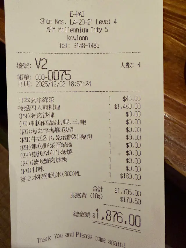 一杯鐵板燒居酒屋条款及细则: