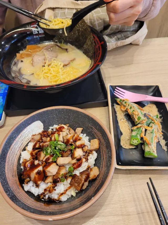 肚餓了,要覓食。這家拉麵店,竟然無需排隊,可馬上人座,所以在此晚餐。手機下單,手機付款,才算成功下單落ORDER。海老濃湯叉燒拉麵 餐牌描述了成份&配料。 湯底:新鮮蝦&生薑&香葉炒香,用豬骨&老雞煮出來。配料:叉燒3片溏心蛋味筍海苔2片,京蔥絲木耳視覺: 幼身拉麵完全浸在橙色的湯裡,只露出紫菜及京蔥絲。 嗅覺:只有淡淡的蝦香。 手感:以筷子在湯底裡夾出各配料,拉麵份量不多,没有壓至一餅餅,容易夾出麵條。口感:幼身拉麵口感煙韌不彈牙,容易咬。叉燒肉多肥膏少,口感實在,起碼不太肥但要比時間多咬几下。味道:蝦湯帶辣,有淡淡蝦香,似檳城蝦麵,但蝦香卻没有檳城蝦麵那般濃。 幼身拉麵易掛汁,把拉麵放在湯匙裡,可以同時享受麵和湯。幼身拉麵梘水味不明顯。中華燒賣COMBO有3款燒賣:醬油糯米豚內燒賣 糯米帶甜為主,夾雜肉碎。 海老豚肉燒賣 味道接近飲早茶的籠籠燒賣。麻辣豚肉燒賣 麻辣明顯,但不算太辣。一穚辛辣油麵 朋友點了大盛,附溫泉蛋。原來辛辣調味油在碗底,要先拌勻, 再慢慢享用。偷嚐一口,只是辣度&鹹度比蝦麵高一點,但没有噴火的感覺。…查看更多