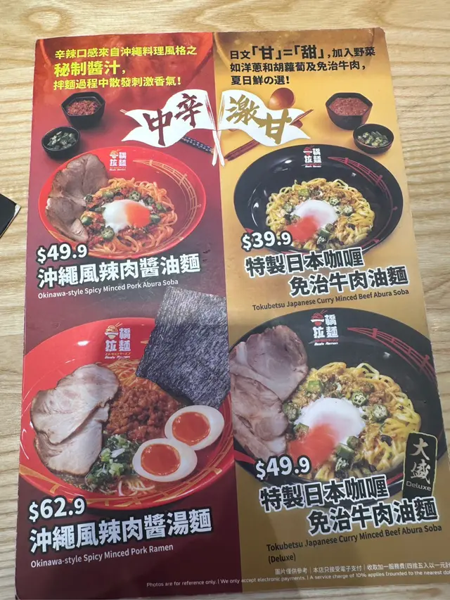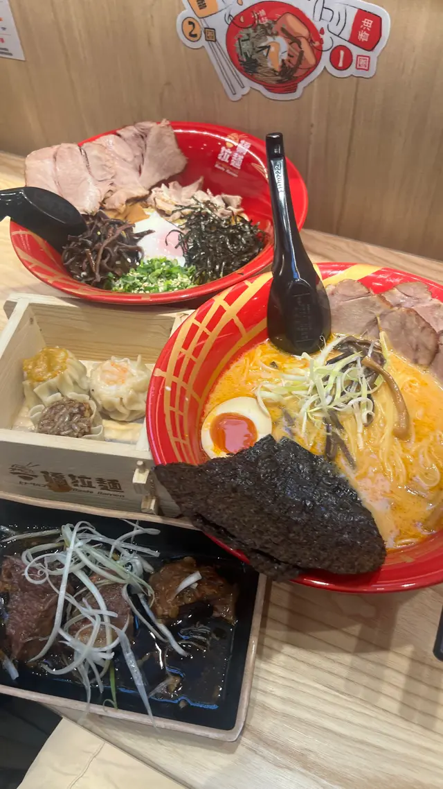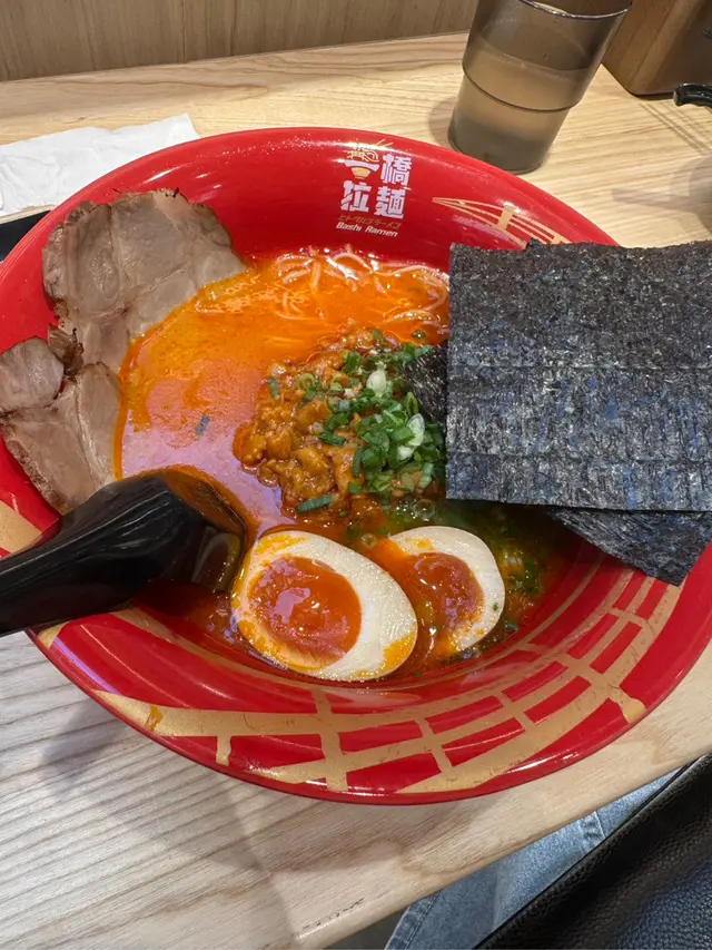 二人餐失望之選放工突然好想食拉麵,見到新開張,抱住試新嘢嘅心態,我哋喺荃新天地試咗一橋拉麵嘅二人餐($138),結果幾失望。🍜 招牌豚骨叉燒拉麵:湯底唔夠濃郁,叉燒冇咩味,冇蛋已經扣分,拉麵亦唔夠彈牙,整體冇驚喜。🌶️ 海老濃湯叉燒拉麵:味道偏辣,但餐牌完全冇標示,對唔食辣嘅人嚟講真係唔太友善。配菜小食都係一般,冇特別。以差唔多價錢,荃新天地另一間拉麵明顯好食好多。整體食物質素非常一般,唔會再回頭。…查看更多