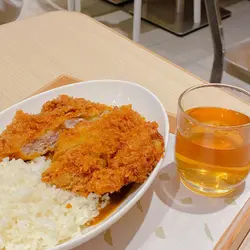 这道鸡扒以豆乳和味噌调味,豆乳的滑顺和味噌的咸香,配上鸡扒有种奶油味。配菜是日本马铃薯豚肉煮马铃薯和豚肉煮在一起,薯仔吸收了豚肉的汁水,入味十足,豚肉则不会过老,保持了适当的口感,还有芋丝吸收酱汁精华,这道配菜简单却充满日式家庭菜肴的温暖感。店舖使用田牧越光米,饭粒清晰,口感软糯。饮品:蜜桃红茶(冻)