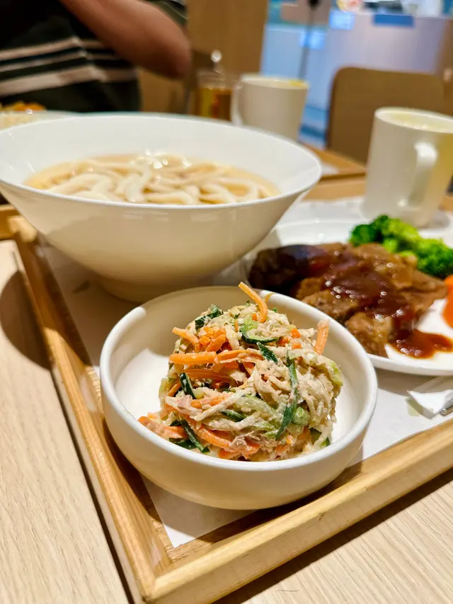 十勝豬扒肉質極為鬆軟,經過微燒後,表面微微焦黃,醬汁滲入肉裡,風味突出,這款是店舖招牌菜。前菜選了和風大根青瓜吞拿胡麻拌,沙律以大根、青瓜絲和吞拿魚拌在一起,加入胡麻醬,口感爽口清新,非常開胃。經蘿蔔絲和青瓜的清脆,與吞拿魚的鮮味互相配襯。主食方面選了鰹魚湯稻庭烏冬,以其彈牙的口感聞名,搭配鰹魚湯,湯頭清淡卻香氣四溢。飲品是100%日本產蜜柑汁(凍)