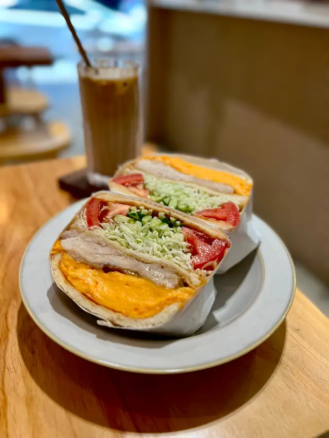 🥪每次必叫一浪總匯三文治- 有厚厚滑腿雞肉- 可走美乃滋醬 (怕有生蛋成份)- 含花生醬,令三文治更香鐵觀音可可牛奶🥛- 茶味好香- 可愛熊仔圖案好治癒鹿兒島黑豚御好燒croffle- 醬汁好味- 玉子燒厚厚的、調味也剛剛好本灣魚產三重蕃茄義麵- 岩曬大人小朋友食的義麵- 濃濃蕃茄味得開胃餐廳服務:這是pet friendly的餐廳,寵物一般都會安排室外位置,再在枱側夾上小風扇,令大人寵物們都坐得舒服。餐廳職員看到有需要人士都會盡量安排舒適位置,服務好好。查看更多
