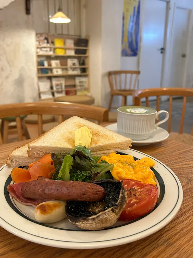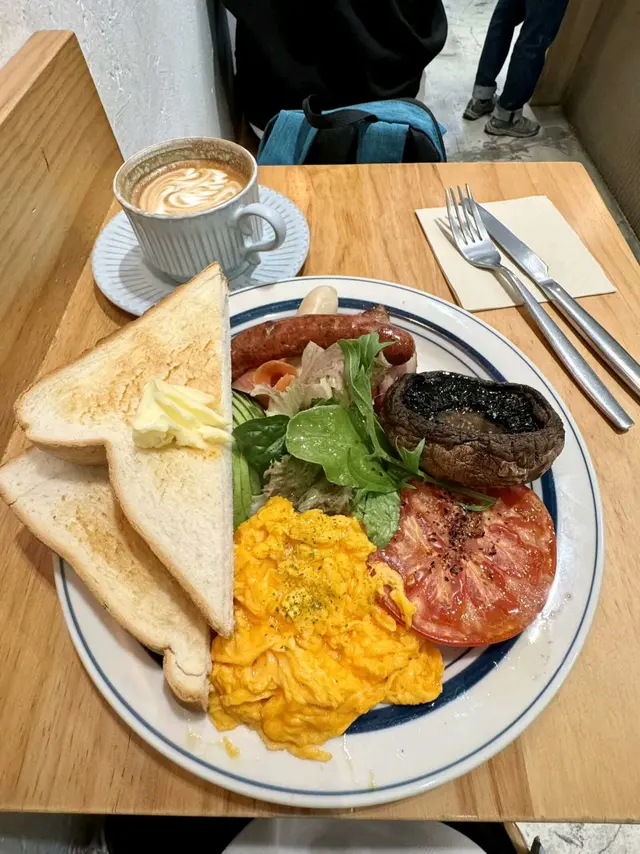 ~ Regular All-Day Breakfast ~ Genmaicha Latte •I recently enjoyed the all-day breakfast at Wan Land Cafe in Tai Kok Tsui, and it left a satisfying impression 🤍! The regular breakfast spread featured perfectly cooked scrambled eggs, a succulent chicken frank, and a noteworthy Wagyu black truffle sausage. The bacons were crisp, the smoked salmon was fresh, and the avocado added a creamy touch. The inclusion of portobello mushrooms and a side salad brought a wholesome balance to the plate 🍽️. The toasts with a generous layer of butter were simple yet delightful 🍞. For the drink, I ordered a genmaicha latte, which I think was a unique drink not commonly found on cafe menus 😆! Overall, a delightful breakfast experience with a variety of flavours that cater to diverse tastes 👍🏻.查看更多