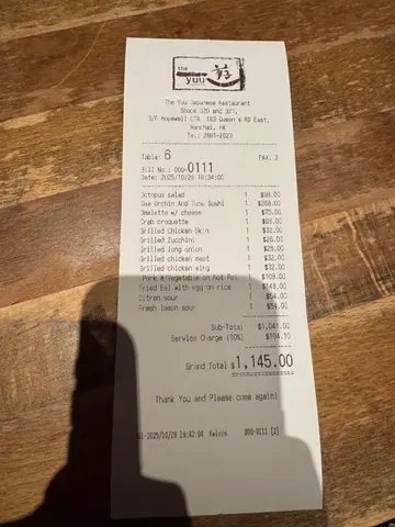 最近去咗湾仔「一游」食日本菜,餐厅Menu选择款式多多,可以透过开放式厨房欣赏厨师即炸天妇罗、手捏寿司,装修风格参考昭和时期街道,有种置身日本怀旧居酒屋的感觉。*此餐厅收取全单10%服务费。 白身鱼薄切(单点$280),白身鱼肉质嫩滑,色泽雪白剔透,味道鲜甜,配以香葱柚子醋、芥末、海龙须菜、石莼、麒麟藻食用,味道清爽。海鲜天妇罗盛合(单点$248),10款天妇罗,包括有紫菜海胆、扇贝、海老、鱚鱼、池鱼、鱿鱼、蟹棒、南瓜、蕃薯、茄子、秋葵,即叫即炸,口感酥脆,咬落去一滴油都没有,不油不腻,配以抹茶盐、白萝卜泥、天妇罗沾汁食用,味道更佳,略嫌鱚鱼鱼片天妇罗内的鱼片过于薄切,令鱼片存在感稍低。胡麻火炙三文鱼卷(单点$220),表面铺满沙律菜、木鱼花、深煎胡麻酱,三文鱼经过火炙之后,口感半生熟,油份被逼出,配以青瓜、泽庵渍食用,味道清新。免治和牛炒饭(单点$180),和牛粒食落油脂味浓,略嫌切得比较细碎,配料包括有翠玉瓜、鸡蛋、香葱,炒饭口感粒粒分明,食落带有酱油味道。新鲜生果茶(单点$78),内有苹果、香橙、菠萝,味道酸甜,饮落类似莓果茶。鲜橙汁烧酌梳打(单点$54),饮落容易入口。地址:香港皇后大道东183号合和中心3楼320-321号店舖…Read More