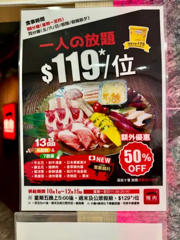 我觉得商家对放题理解系唔系有问题?饮料只可以选择一杯?滴肉品种得果三款,加小小酱又叫另一款。加一服务费,请问服务了什么?烤盘都要3蚊一个,绝对不会有下一次,点餐程式都系---…查看更多