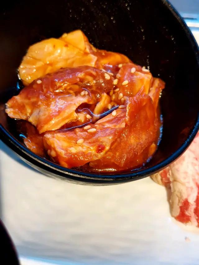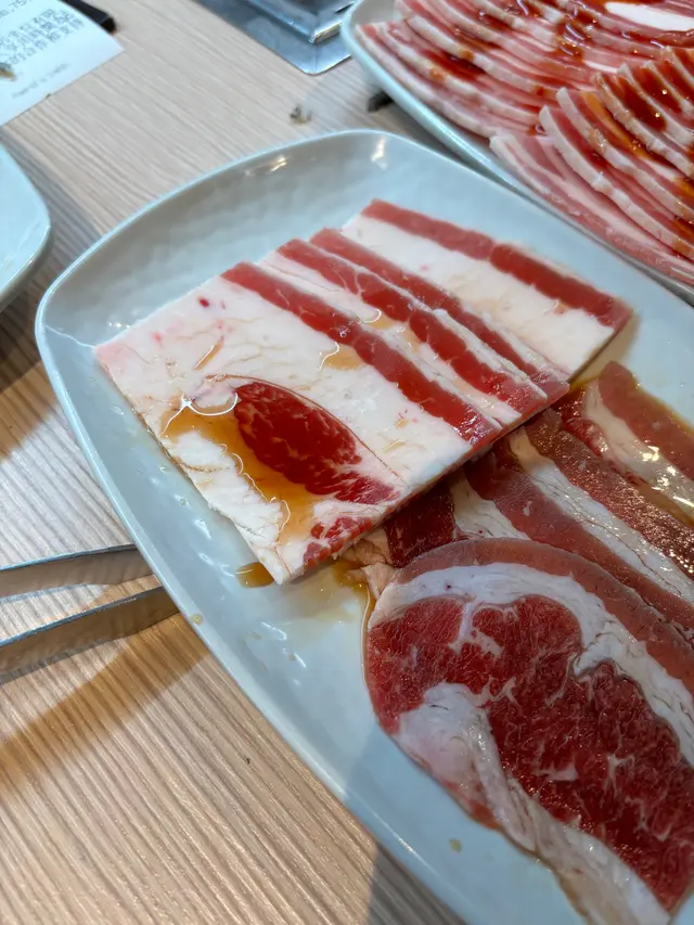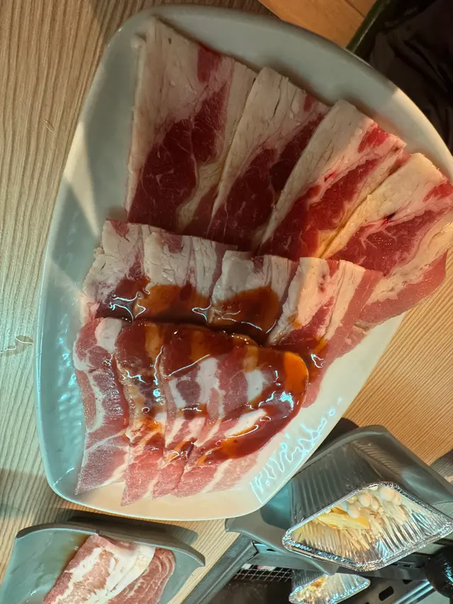 上水一間主打個人壽喜燒嘅日式燒肉店,一入座就俾寬敞座位同充滿昭和風情嘅裝潢吸引住,環境乾淨舒適,每個座位都設有自己嘅燒爐,非常適合鍾意慢慢燒、專心食肉嘅人🥩!我揀咗鹿兒島A4和牛肉眼壽喜燒套餐,牛肉油花勻稱,入口即化,配上漆黑濃郁嘅醬汁,仲有超滑蛋汁蘸一蘸,真係升天級享受🤤。另外加點咗V3日本和牛+牛五花壽喜燒、牛板翼、魷魚、節瓜等。海鮮質素唔錯,魷魚新鮮爽口,烤過之後香味撲鼻。配菜方面有白飯、味噌湯、泡菜同埋可樂,整體份量足夠。店員服務親切,會主動補水同收碟,燒爐換網都好快。價錢方面中等偏上,但以肉質嚟講算係物有所值,推薦比鍾意壽喜燒或日式燒肉嘅朋友試一試!🍽️…查看更多