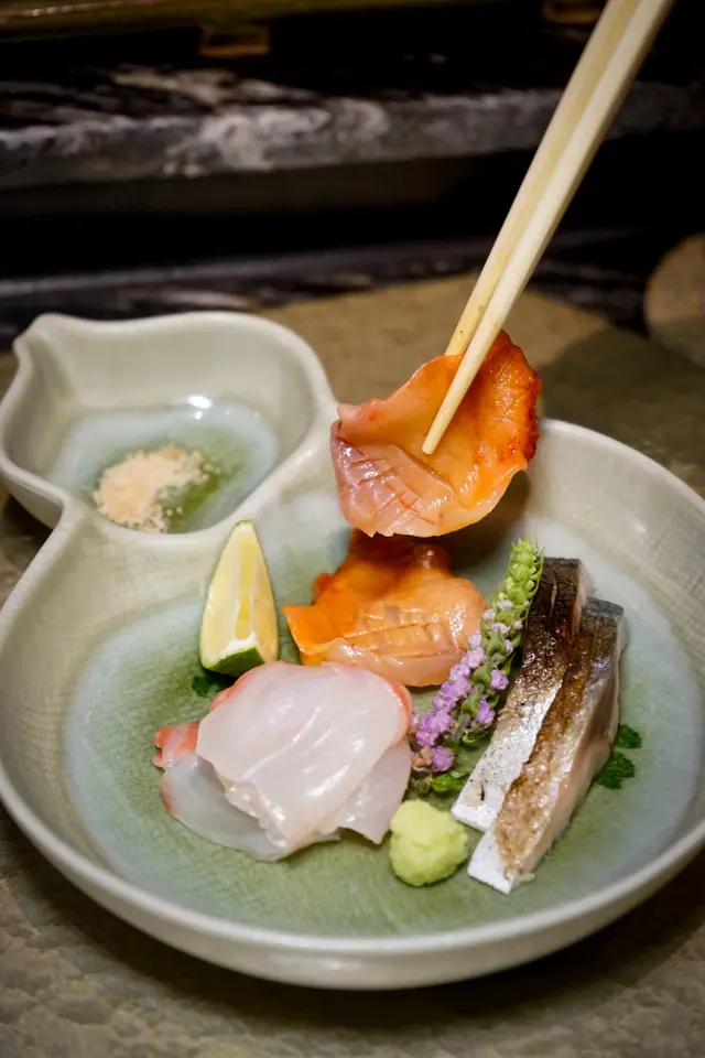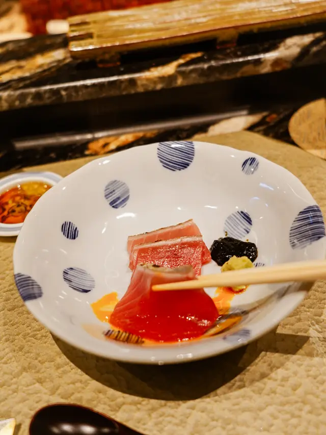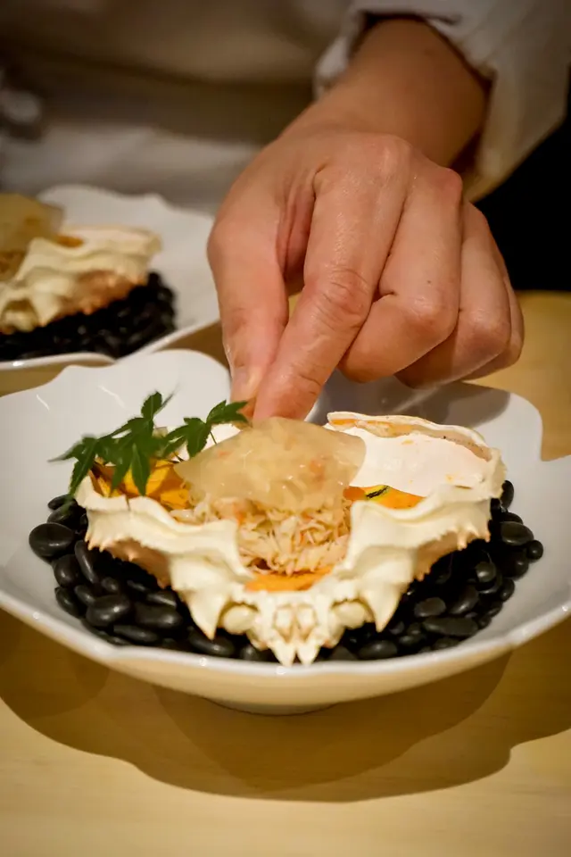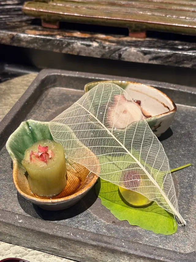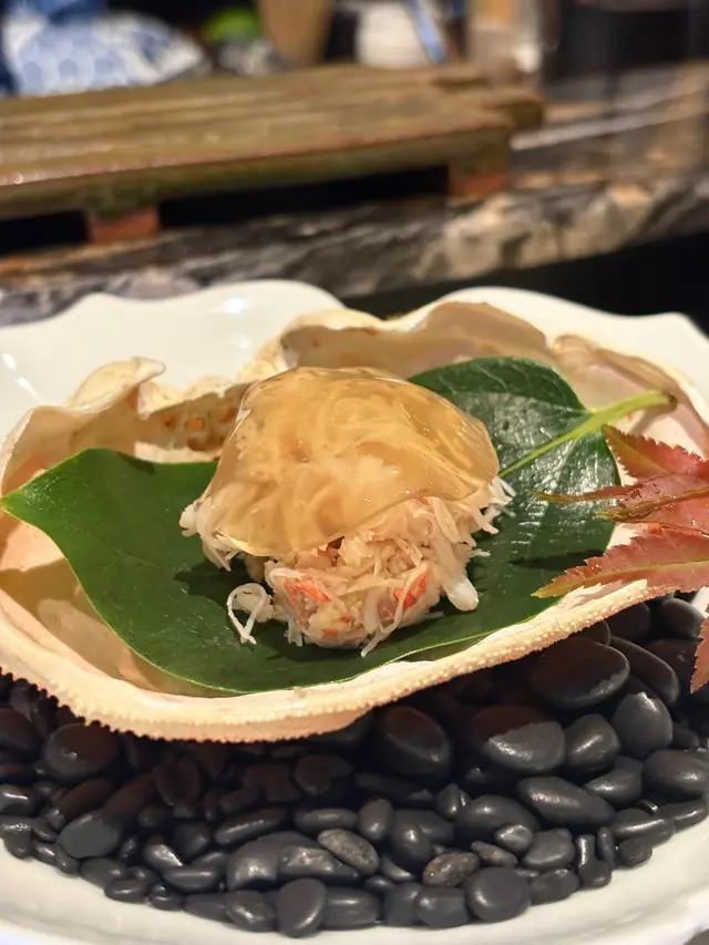 A friend took me on a fancy refined Japanese cuisine after losing a bet 😂😂 We started by ordering Kanagawa octupus Kyoto egg plant and Shizuoka tomato Jerry, the dish had three distinct components presented on a rustic stone plate Emphasising seasonal Elegance.The we had the Hokkaido hairy crab ,what melted my mouth was the Five seasonal sashimi ,thinly sliced,unique texture and flavours oh can’t forget the freshness, I highly recommend this dish.We then got my favourite pigeon sichuan pepper style , unique flavour was very tasty.More snow crab shumai kyoto black vinegar came in, The green Chilled cucumber puree melon was mild Subtly sweet,and intensely refreshing taste.I highly recommend this restaurant Every dish we ordered was bursting flavour, the presentation was impressive,the waitress were friendly, Hands down ,one of the best Japanese dining experiences.…查看更多